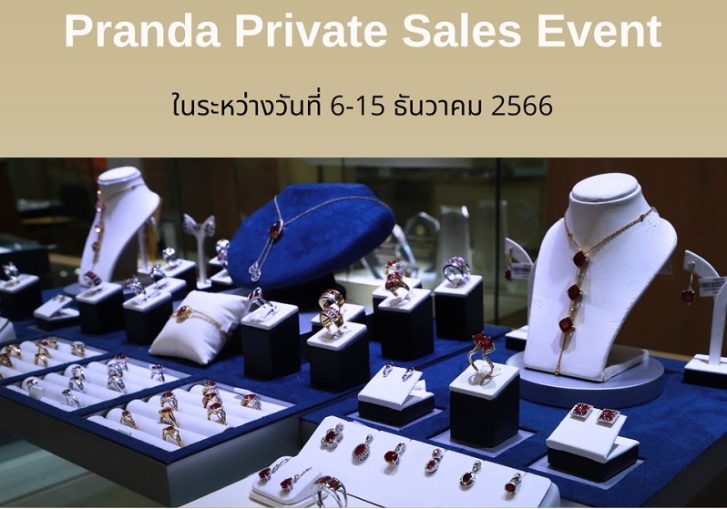 บริษํท แพรนด้าจิวเวลรี จำกัด (มหาชน) ขอเรียนเชิญท่านเข้าร่วมงาน Pranda Private Sales Event ภายในงานมีเครื่องประดับ ลดราคามากมาย UP TO 50% OFF ณ โชว์รูมของบริษัท ในระหว่างวันที่ 06-15 ธันวาคม 2566 เลขที่ 28 ซอยบางนาตราด 28 แขวงบางนาใต้ เขตบางนา กรุงเทพฯ 10260 โทร.02-769-9999