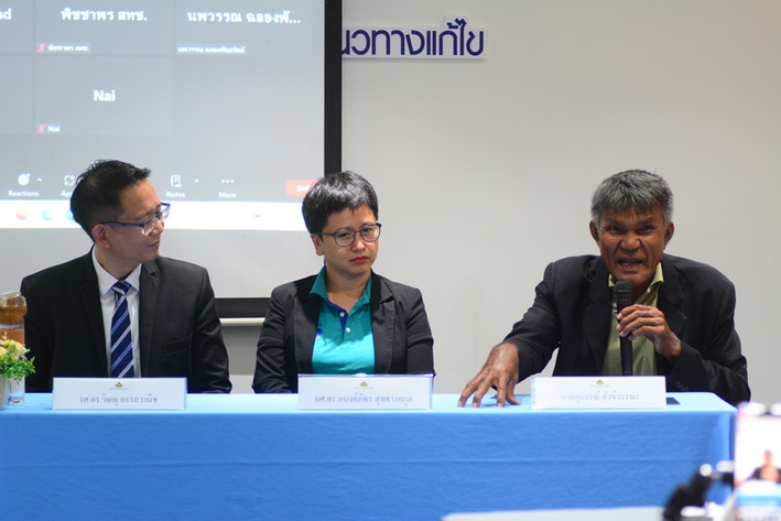 จากนั้นทางสมาคมฯ ได้แถลงข่าวเรื่อง การเปลี่ยนแปลงสภาพภูมิอากาศที่มีผลต่อภาคการเกษตร และแนวทางแก้ไข ซึ่งได้รับเกียรติจาก รศ.ดร.วิษณุ อรรถวานิช ผศ.ดร.อนงค์ภัทร สุทธางคกูล และนายสุกรรณ์ สังข์วรรณะ กลุ่มเกษตรกรผู้ปลูกข้าว อ.หนองหญ้าไซ จ.สุพรรณบุรี ร่วมแถลงข่าว โดยมีนายวิชา ธิติประเสริฐ ดำเนินรายการ