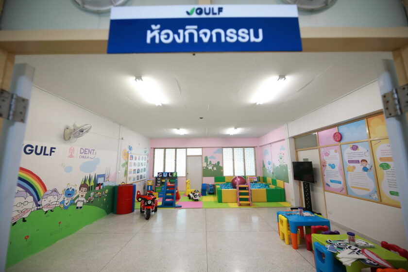 สำหรับการปรับปรุงอาคารโครงการทันตกรรมปากเกร็ด GULF มอบงบประมาณจำนวน 2,000,000 บาท เพื่อปรับปรุงอาคาร ทั้งห้องทันตกรรม 6 ห้อง ห้องกิจกรรม และห้องน้ำสำหรับผู้พิการ รองรับการเข้าถึงและใช้ประโยชน์ของผู้ใช้บริการทุกกลุ่มเป้าหมายอย่างเหมาะสม เพื่ออำนวยความสะดวกผู้ป่วยที่อยู่ในความดูแลของสถานสงเคราะห์ในสังกัดกรมส่งเสริมและพัฒนาคุณภาพชีวิตคนพิการในพื้นที่ เช่น สถานสงเคราะห์เด็กอ่อนบ้านปากเกร็ด บ้านเฟื่องฟ้า บ้านนนทภูมิ บ้านราชาวดีหญิงและชาย โดยให้บริการทางทันตกรรมแก่เด็ก ๆ ทั้งขูดหินปูน อุดฟัน ถอนฟัน รักษารากฟัน และเคลือบหลุมร่องฟัน