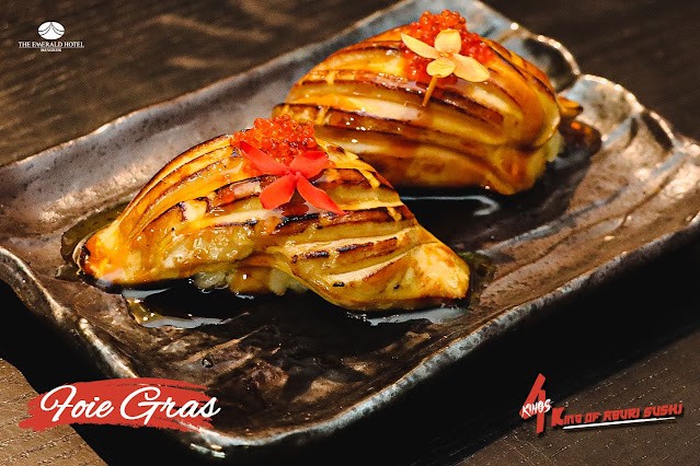 ดิเอมเมอรัลด์ ค็อฟฟี่ช็อพ โรงแรม ดิ เอมเมอรัลด์ เชิญคุณมาสัมผัสประสบการณ์แห่งตำนานความอร่อยของเมนู “4 Kings : King of Aburi Sushi” ที่รวบรวมสุดยอดซูชิพรีเมียมทั้ง 4 ชนิดคือ ฟัวกราส์-ตับห่านหอมกรุ่นนุ่มละมุนพร้อมละลายในปาก วากิว-เนื้อชั้นดีเบิร์นจนหอมมัน อูนางิ-ปลาไหลญี่ปุ่นย่างพร้อมซอสเข้มข้น และ แซลมอน-ปลาส้มที่ลวดลายสไตล์หินอ่อน หวานมัน และอีกกว่าร้อยเมนูให้อิ่มอร่อยได้ทุกวัน บริการรวมในบุฟเฟต์นานาชาติมื้อเย็น ไม่จำกัดเวลาทาน ระหว่าง เวลา 18.00 – 22.00 น.