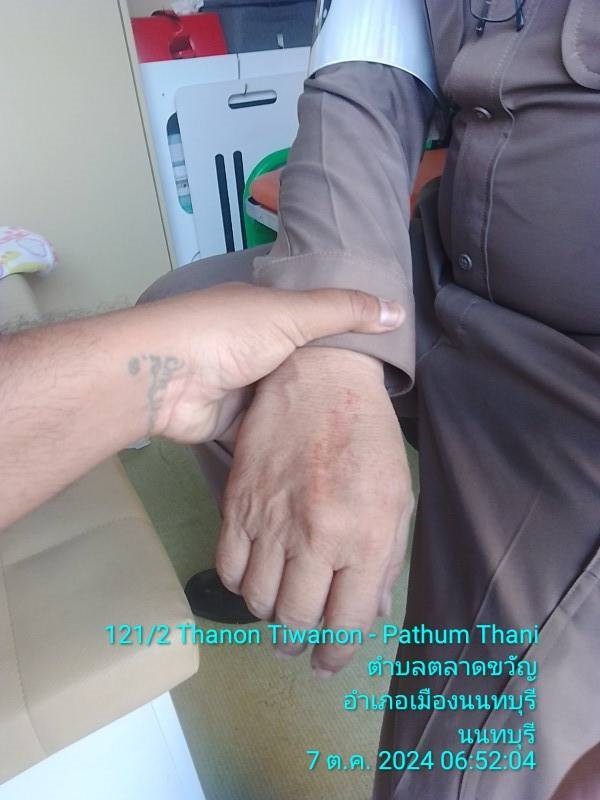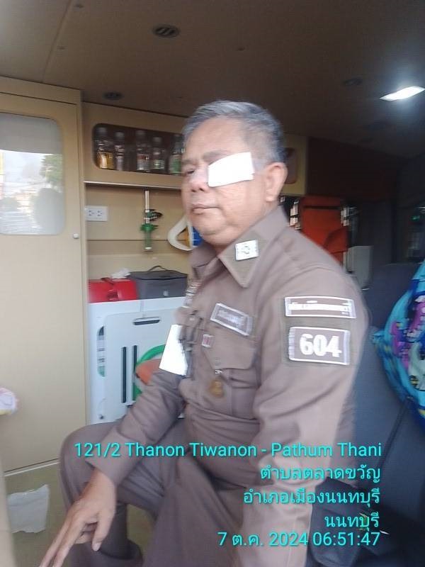 เมื่อวันที่ 7 ตุลาคม 2567 เวลา15.30น. ที่โรงพยาบาลชลประทาน พล.ต.ต.ปรารถนา แผ่นผา ผบก.ภ.จว.นนทบุรี พ.ต.อ.จาตุรนต์ อนุรักษ์บัณฑิตผกก.สภ.เมืองนนทบุรี พ.ต.ต.ปริวัตร สมสอาด สว.จร.สภ.เมืองนนทบุรี ตรวจเยี่ยมบำรุงขวัญ ร.ต.ต.วิทวัฒน์ อัครเมธากิจ ประสบอุบัติเหตุเสียหลักล้มลงทำให้ศีรษะฟาดพื้น ได้รับบาดเจ็บบริเวณหางตาและใบหูข้างขวา โดยเหตุการณ์ดังกล่าวเกิดขึ้น บริเวณแยกติวานนท์ ถนนกรุงเทพ-นนท์ ตำบลตลาดขวัญ อำเภอเมืองนนทบุรี จังหวัดนนทบุรี เหตุการณ์เกิดขึ้นขณะที่ ด.ต.วิชัย เสนเกตุ เจ้าหน้าที่ตำรวจจราจร สภ.เมืองนนทบุรี กำลังอำนวยการจราจรในพื้นที่ ได้ยินเสียงดังคล้ายอุบัติเหตุเกิดขึ้นบริเวณสะพานข้ามแยกติวานนท์ ฝั่งขาเข้า (มุ่งหน้าแยกแคราย) ส่งผลให้ป้ายขนาดใหญ่ตกลงมากีดขวางถนนด้านล่าง และทำให้สายไฟสัญญาณจราจรได้รับความเสียหาย ส่งผลให้สัญญาณไฟจราจรขัดข้องในหลายทิศทาง