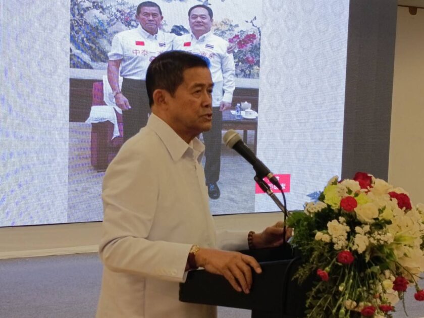 “หลังจากท่านชาติชาย พ้นหน้าที่ไปแล้ว นายกสมาคมมิตรภาพไทย-จีนคนที่ 2 ก็คือผม และผมดำรงตำแหน่งนายกสมาคมมิตรภาพไทย-จีนต่อเนื่องกันมาจนถึงปัจจุบันนี้ โดยตลอดระยะเวลานับตั้งแต่ประเทศไทยกับจีน สถาปนาความสัมพันธ์ทางการทูตระหว่างกัน กระทั่งถึงทุกวันนี้ความสัมพันธ์ของทั้ง 2 ประเทศได้เจริญพัฒนาก้าวหน้าไปมาก ครอบคลุมทุกมิติทั้งระดับราชวงศ์ เรื่อยไปถึงภาคประชาชนทุกสาขาอาชีพ ซึ่ง เป็นสิ่งที่น่ายินดีอย่างยิ่ง และหวังว่าเรื่องราวดีๆ ที่น่าประทับใจจะได้ถูกนำเสนอผ่านภาพยนตร์ดราม่า โรแมนติก เรื่องสายใยรักสองแผ่นดิน ให้คนทั้งโลกได้ซาบซึ้ง”
