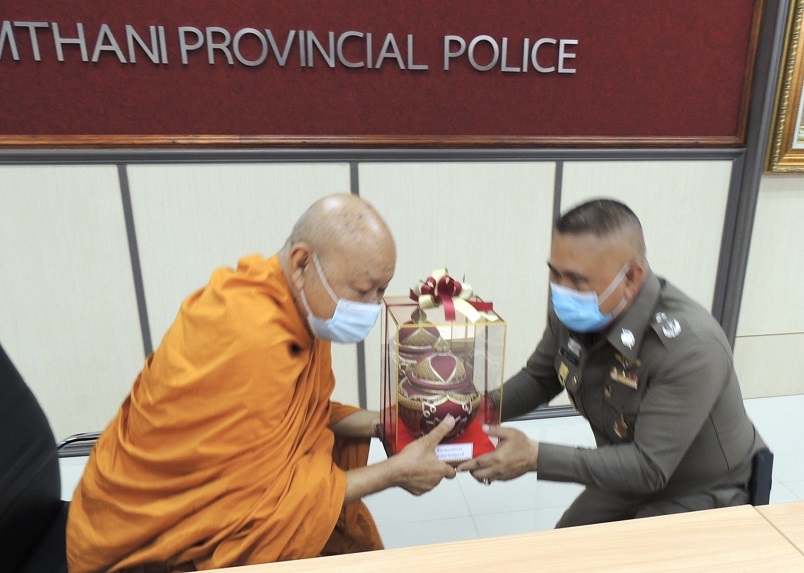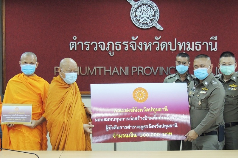 พระธรรมรัตนาภรณ์ เจ้าคณะ จ.ปทุมธานี-เจ้าอาวาสวัดเขียนเขต (พระอารามหลวง) มอบเงินสมทบก่อสร้างบ้านพักประจำตำแหน่ง ผบก.ภ.จว.ปทุมธานี