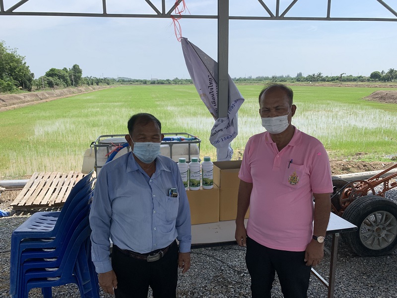 ล่าสุด วันที่ 5 พ.ค.2564 ที่แปลงนาสาธิต เกษตรแปลงใหญ่ คุณวิชาญ ทองดอนโต เลขาธิการสมาคมส่งเสริมชาวนาไทย ในฐานะ ผู้จัดการแปลงนาสาธิต และ คุณสมชาย แจ่มนิยม อดีตผู้ใหญ่บ้านหมู่12 ซึ่งเป็นผู้ดูแลแปลงเกษตรสาธิต ได้ทำการสั่งพ่นวัสดุปรุงดิน และ กรดอะมิโน ตราข้าวใหม่ ปลามัน ที่ผลิตและจำหน่ายโดย บริษัท พรหมชีวา จำกัด ทั่วแปลงนาสาธิตจำนวน 22 ไร่ ซึ่งเป็นครั้งแรกของการเริ่มทำแปลงนาสาธิตแห่งนี้ที่ทำการใส่วัสดุปรุงดิน ปุ๋ย และ กรดอะมิโน