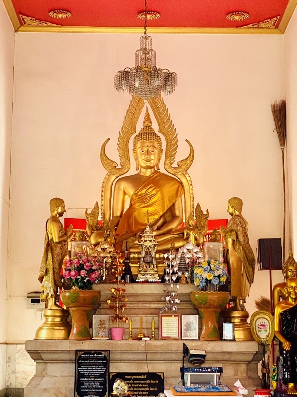 จุดที่ 2 แวะเข้าอุโบสถ ล้อมรอบด้วยสายน้ำคู่กับองค์พระธาตุเจดีย์ส่วนด้านในประดิษฐานพระพุทธชินราชจำลองซึ่งเป็นองค์พระประธานในอุโบสถ