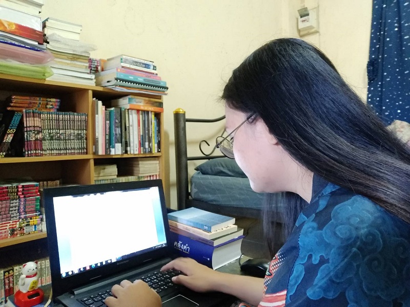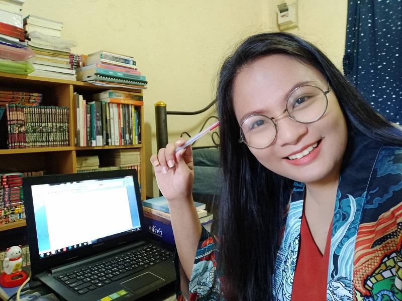 “ปัจจุบันทำงานเป็นนักเขียนอาชีพ รับเขียนหนังสือนิยาย, หนังสือ How to ธุรกิจ, หนังสือสร้างแรงบันดาลใจ, บทความ เรื่องสั้นในรูปแบบของนักเขียนเงา, บทหนังสั้น/ซีรีส์/ละครสำหรับเผยแพร่ในโซเชียลมีเดีย ยังมีงานด้านบรรณาธิการ ครูสอนภาษาอังกฤษ Toeic ออนไลน์และการเป็นเจ้าของแบรนด์สบู่ออร์แกนิกส์ K&M Natural ที่จัดจำหน่ายในรูปแบบดิจิทัลมาร์เก็ตติ้งด้วยค่ะ เหตุผลที่เมย์มาสวมบท ‘นักเขียนเงา’ เริ่มจาก นิยายเรื่องแรกเขียนแนวชายหญิง วาย ฯลฯ ที่เลือกอาชีพนักเขียนเงา คือ โอกาสในการได้ทำงานที่ชอบและรายได้ที่น่าพอใจค่ะ ปกติเมย์เป็นคนที่ชอบเรียนรู้และตื่นเต้นกับการทำสิ่งใหม่ ๆ อยู่แล้ว พอมีผู้ว่าจ้างสนใจจ้างให้เขียนนิยายให้ก็ตัดสินใจรับทันที เพราะนอกจากจะได้ทำสิ่งที่ชอบแล้ว เรายังสามารถสร้างรายได้จากสิ่งนี้ได้อีกด้วย นิยายเรื่องแรก คือนิยายแนวสยองขวัญ ความยาว 50 หน้า A4 ค่ะ หลังจากนั้นก็ตามมาด้วย นิยายรักโรแมนติกคอมเมดี้ (ช-ญ), นิยายรักโรมานซ์ (ช-ญ) และล่าสุดคือนิยายวาย(ช-ช) ความยาว 120-150 หน้า A4 ค่ะ ในการรับงานเขียนของเมย์จะรับทั้งสองรูปแบบ คือรับจากสำนักพิมพ์ แต่โดยส่วนใหญ่กว่า 80% จะมาจากผู้ว่าจ้างที่เป็นนักเขียนค่ะ แล้วพอได้โจทย์จากผู้ว่าจ้างก็จะลงมือเขียน แต่ถ้าเนื้อเรื่องเกิดไปคล้ายหรือเหมือนกับเรื่องราวของนักเขียนคนอื่นตัวนักเขียนเงาต้องเป็นฝ่ายขอโทษและรับผิดชอบแน่นอนค่ะ หากผู้ว่าจ้างไม่สะดวกที่จะเปิดเผยว่ามาจ้างนักเขียนเงาเขียนให้ เค้าอาจจะรับผิดชอบไปในนามของเค้าเอง และติดต่อให้นักเขียนเงาชดใช้ค่าเสียหายให้กับเค้าในทางลับอีกทีค่ะ โดยส่วนใหญ่ในกรณีนี้ จะจบที่การชดใช้ค่าเสียหายและปรับแก้ไขงานเขียนใหม่ค่ะ