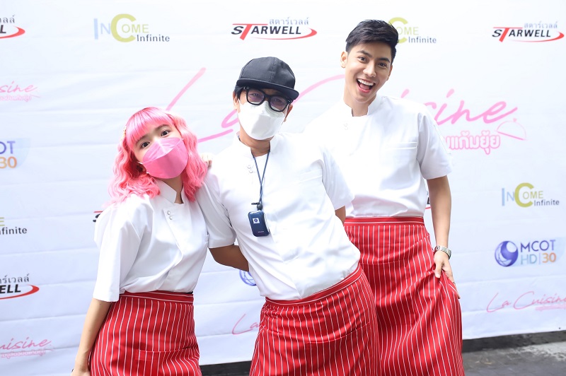 ได้ฤกษ์งามยามดี 2 ผู้บริหาร “มณฑณ์ญภัฏ รุ่งโรจน์” และ “ดร.วโรดม ศิริสุข” (ชายแฮ็คส์) จากค่าย อินคัมอินฟินิท จำกัด ในเครือ สตาร์เวลล์ นำทีมบวงสรวงเปิดกล้องซีรีส์ใหม่ “La cuisine เมนูลับฉบับแก้มยุ้ย” โดย อ๊อด-ราเมศ เรืองประทุม ผู้กำกับการแสดง คว้า 2 หนุ่มหล่อหน้าใส “ป๊อป-ภัทรพล วัลลภศิริ” และ “มิก-มณฑล วิเศษสินธุ์” ขึ้นแท่นพระนายคู่จิ้น พร้อมด้วยนักแสดงอีกมายมาย อาทิ บูม-ปัณณธร ปวรภูบดินทร์, อาชว์-เตชิต พรหมอารักษ์, ฮอนด้า-อัคระวุฒิ อัครากรภิรมย์, บราว-สุภัสสรา สุรัตนะมณีพร, โมโม่-ปวริศา กิตติช่วงโชติ, แอ๊นท์-วรินดา เนินเพิ่มพิสุทธิ์, ท๊อด-สุทธิพงษ์ นาคแดง, ไดสุเกะ สุกี้คาวา, ปฏิภาณ เสือมะกอก, วิทยา สุวรรณเทพ, แก้ว- อภิรดี ภวภูตานนท์ ควงลูกสาวคนสวย เลลาณี ทศพร มาร่วมพิธีบวงสรวง ณ ลานบวงสรวง หน้าศาลท้าวมหาพรหม อาคารปฏิบัติการ ช่อง 9 MCOT โดยเน้นมาตรการป้องกันโควิด-19 ตามมาตรฐานของกระทรวงสาธารณสุข