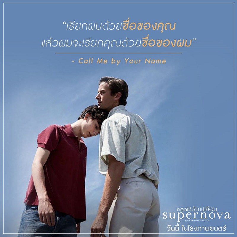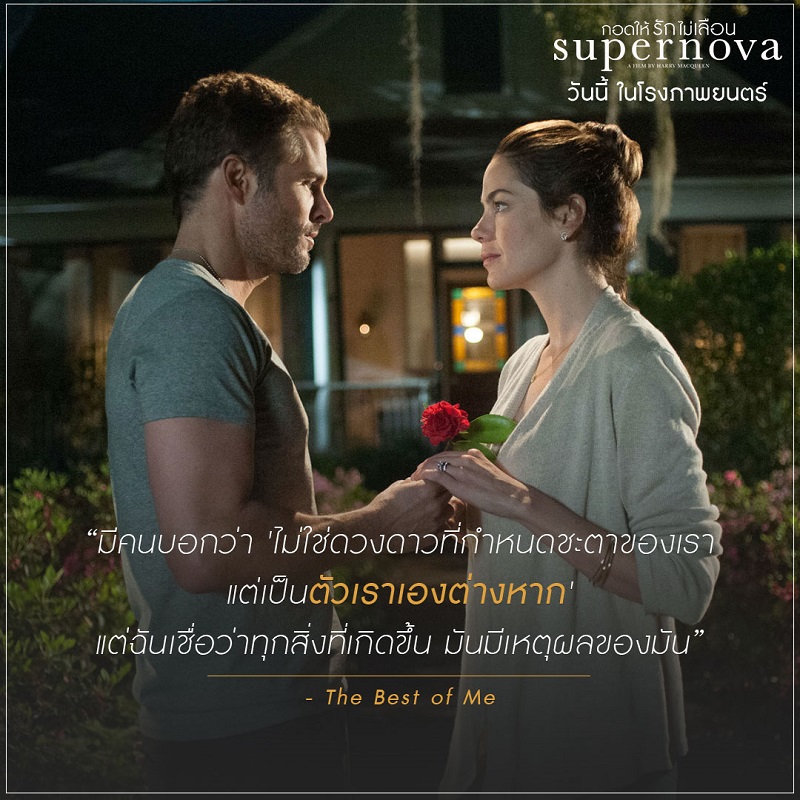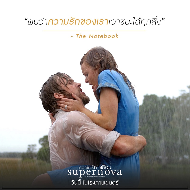 เตรียมหัวใจคุณให้พร้อมแล้วย้อนรำลึกถึงความประทับใจจากประโยคเด็ดในภาพยนตร์ที่คุณเคยซาบซึ้งใจและอบอุ่นหัวใจ โดยจูงมือคนรักเข้าโรงภาพยนตร์เพื่อสร้างความทรงจำกับประสบการณ์รักครั้งใหม่ที่จะทำให้คุณซึ้งกินใจ กับภาพยนตร์รักแห่งปีเรื่องแรกที่ได้ชมต้อนรับการเปิดโรงภาพยนตร์อย่าง “Supernova กอดให้รักไม่เลือน” กับเรื่องราวของ แซม (โคลิน เฟิร์ธ) และ ทัสเกอร์ (สแตนลีย์ ทุชชี) คู่รักที่ใช้ชีวิตอยู่ด้วย กันมานาน 20 ปี พวกเขาตัดสินใจออกเดินทางเพื่อพบปะเพื่อนฝูงเป็นครั้งสุดท้าย เพราะทัส เกอร์ถูกวินิจฉัยว่าเขากำลังจะสูญเสียความทรงจำในทุกสิ่งที่เขาเคยรู้จักไปทีละนิด พวกเขาจึงต้องการเก็บเกี่ยวความสุข และกอดสุดท้ายเอาไว้ก่อนทุกอย่างจะเลือนหายไปตลอดกาล