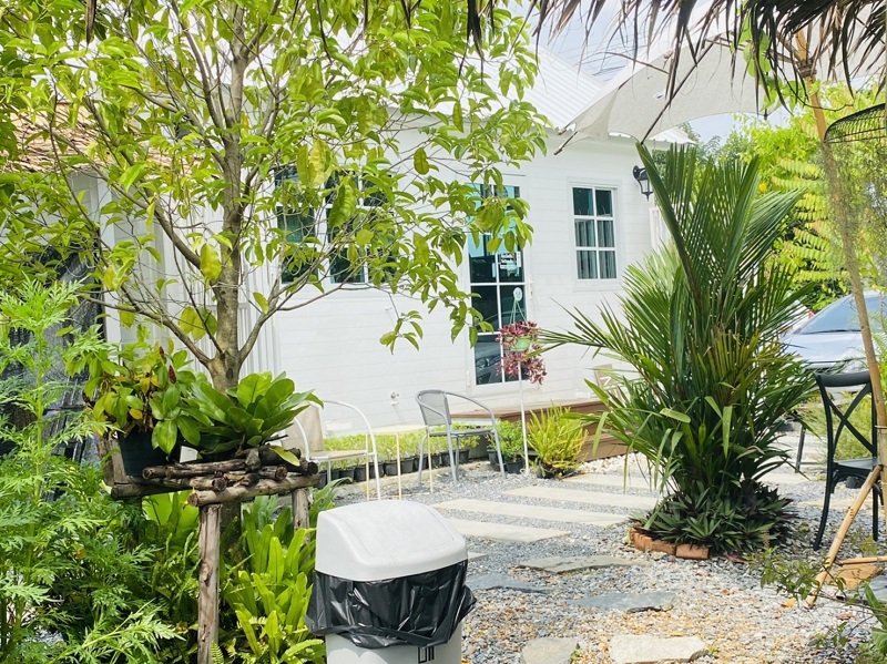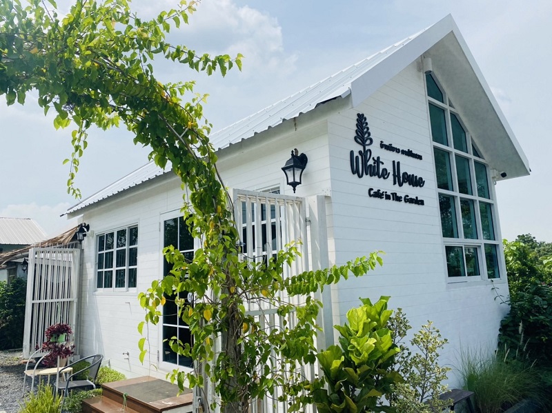 “เที่ยวทั่วไทยไปกับพี่หนุ่ม’สุทน รุ่งธัญรัตน์” ขอพาไปชิลล์เอ้าท์ที่ ร้านบ้านสีขาว White House Cafe in The Garden คาเฟ่ในสวนริมถนนทางหลวงชนบท-วัดใหม่ผดุงเขต อำเภอบางกรวย นนทบุรี ร้านกาแฟเล็กกะทัดรัด เป็นบ้านสีขาวตามชื่อเลยล่ะครับ เก๋ๆ น่ารักๆ โซนที่นั่งด้านนอกตัวร้านร่มรื่นใต้ซุ้มร่มเงาไม้หลายชนิดแต่ที่เด่นตามากสุดก็ดงดอกดาวกระจายที่มีชิงช้าไม้นั่งเล่นแกว่งไหวถ่ายรูปได้สวยเลยทีเดียวสำหรับสาวๆ สายหวานโรแมนซ์ ที่นี่มีที่นั่งไม่มากแต่เหมาะมากครับสำหรับใครที่ไม่ชอบไปเจอผู้คนพลุกพล่าน กาแฟสดของเขาก็ดีแถมมีเค้กมะพร้าวชิ้นโตให้ลิ้มลอง ร้านบ้านสีขาว คาเฟ่ในสวน เริ่มเปิดให้บริการเมื่อวันที่ 18 กันยายนนี้เองนะครับ ผมเลยโชคดีมีร้านกาแฟที่ใหม่มานำเสนอผู้อ่านได้เหมือนเดิมล่ะครับ