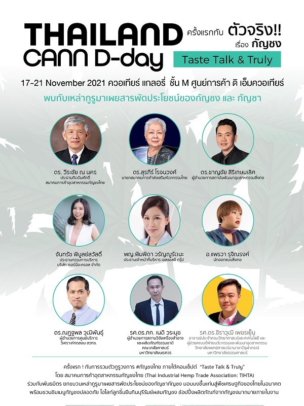 (16 พ.ย. 64) เตรียมตัวให้พร้อมกับอีเว้นท์แห่งปี ครั้งแรกกับการรวมตัวกูรูวงการกัญชงไทย ภายใต้คอนเซ็ปต์ “Taste Talk & Truly” โดย สมาคมการค้าอุตสาหกรรมกัญชงไทย (Thai Industrial Hemp Trade Association: TIHTA) ร่วมกับพันธมิตร ชวนทุกคนมา ชิม ช้อป เที่ยว พร้อมชิทแชทกับกูรูสายเขียว ให้รู้กันไปเลยว่ากัญชงมีดียังไง งานเดียวจบ รู้ครบ ไม่ตกเทรนด์ วันที่ 17-21 พ.ย. 64 นี้ เวลา 11.00 น. เป็นต้นไป ที่ควอเทียร์ แกลอรี่, ชั้น M ศูนย์การค้า ดิ เอ็มควอเทียร์ (BTS พร้อมพงษ์) ไฮไลท์ในงานมากมายรอให้คุณได้มาสัมผัส