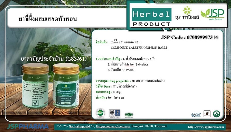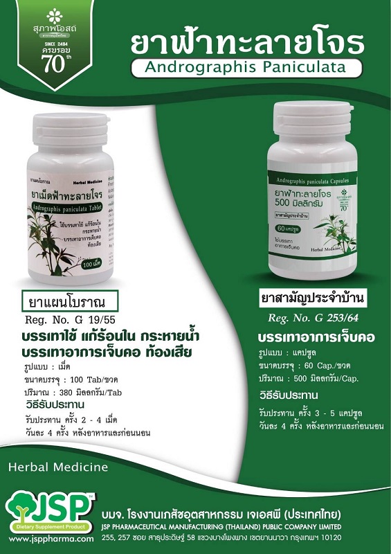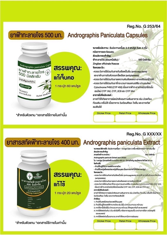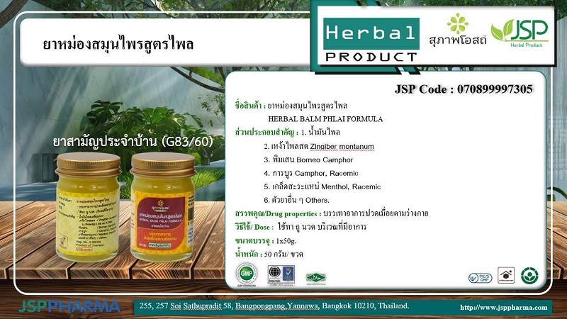 เช่น ฟ้าทะลายโจร กระชายขาวสกัด ยาเส็ดพังพอน ยาแก้ไอ และยาหม่องฯลฯ