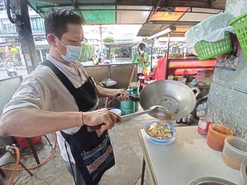 “ร้านชื่อ ‘ข้าวต้มโต้งรุ่งผักบุ้งโชว์’ เปิดมาเกือบจะยี่สิบปีแล้วครับ ตั้งอยู่ลาดพร้าววังหิน 30 เบอร์โทรสั่งอาหาร 095-493-1741 ส่วนมากลูกค้าที่สั่งจะให้ LINEMAN มารับ เมนูเด็ดที่ลูกค้ามาต้องสั่งก็มียำปลาสลิด, ผัดหอยลาย, ปลากระพงทอดน้ำปลา, ปลาสามรส, ต้มยำเนื้อปลาน้ำใส, แขนงหมูกรอบ, กุยช่ายขาวเต้าหู้หมูสับครับ ที่ทำคนเดียวเพราะที่มันแคบเลยทำคนเดียว จากสถานการณ์โควิดที่ผ่านมาก็ขายทุกวันแต่ลูกค้าสั่งไปทานที่บ้านเอา แต่มีลดพนักงานลงเพราะร้านเปิดไม่ได้แต่ก่อนเด็กเสิร์ฟเยอะตอนนี้เหลืออยู่ 3-4 คน ตอนนี้โควิดระบาดอยู่แต่พอมีคนละครึ่งก็พออยู่ได้ครับ ในส่วนของเมนูอาหารบางครั้งลูกค้าอยากทานเมนูไหนสั่งเราก็ทำให้ครับ คือลูกค้าอยากทานอะไรก็ทำให้ ทุกวันนี้กลับมาเปิด 5 โมงเย็นถึงเที่ยงคืนเหมือนเดิมครับ”
