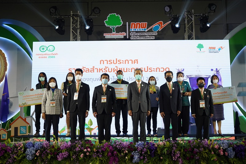 สำนักงานคณะกรรมการกำกับกิจการพลังงาน (สำนักงาน กกพ.) จัดงานประกาศผล และพิธีมอบรางวัลการประกวดกองทุนพัฒนาไฟฟ้า ประจำปี 2565 “กองทุนพัฒนาไฟฟ้าอวอร์ด 2565” ส่งมอบรางวัลเเห่งเกียรติยศ เชิญถ้วยพระราชทานสมเด็จพระกนิษฐาธิราชเจ้า กรมสมเด็จพระเทพรัตนราชสุดาฯ สยามบรมราชกุมารี เพื่อเป็นเกียรติประวัติของผู้ชนะการประกวด และเงินรางวัลรวมกว่า 710,000 บาท ให้กับสุดยอดผลงานสร้างสรรค์ สำหรับรางวัลรวมทั้งสิ้น 21 รางวัล 28 ผลงาน พร้อมโชว์ความสำเร็จของการดำเนินงานผ่านการจัดแสดงผลงานของผู้เข้าประกวด และจำหน่ายสินค้า ผลิตภัณฑ์ดีเด่นจากกองทุนพัฒนาไฟฟ้าในพื้นที่ประกาศทั่วประเทศ โดย นายเสมอใจ ศุขสุเมฆ ประธานกรรมการกำกับกิจการพลังงาน เป็นประธานมอบรางวัล โดยรางวัลประเภทกองทุนขนาดใหญ่ดีเด่น จำนวน 3 รางวัล ประกอบด้วย
