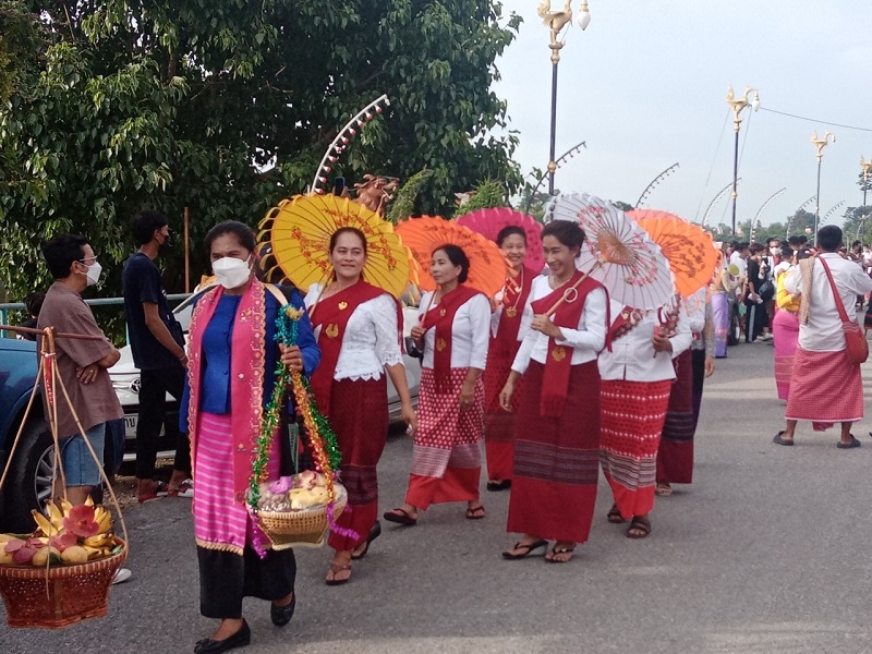 เวลา 16.00 น.ทางผู้จัดงานได้จะให้เดินขบวนวิถีชีวิตชาวมอญ มีขบวนสาวงาม ขบวนสาวเทินหม้อ ขบวนหาบเครื่องใช้ทำไทยทาน ขบวนฟ้อนรำแบบชาวมอญ ขบวนรำกลองยาว และขบวนเกวียนจะเป็นชุดสุดท้าย ขบวนแห่ไม่ยาวมากทำให้จัดขบวนเดินไม่นานนัก ก็เดินทางมาสู่ลานวิหารปากี ทำพิธีกรรมอย่างเป็นทางการในช่วงเย็นไปจนถึงค่ำ ซึ่งพวกเราออกเดินทางออกจากงานในเวลาสิบแปดนาฬิกา เพื่อเดินทางกลับกรุงเทพฯ ไม่ได้อยู่ร่วมงานจนจบพิธีการ ขอขอบคุณ ผอ.กุ๊กไก่ ปิยพัชร์ วงศ์โดยหวัง ททท.สำนักงานราชบุรี รองเล็ก และทีมงาน ททท.ราชบุรีทุกท่านที่คอยอำนวยความสะดวก และ ส่งพวกเรากลับบ้าน