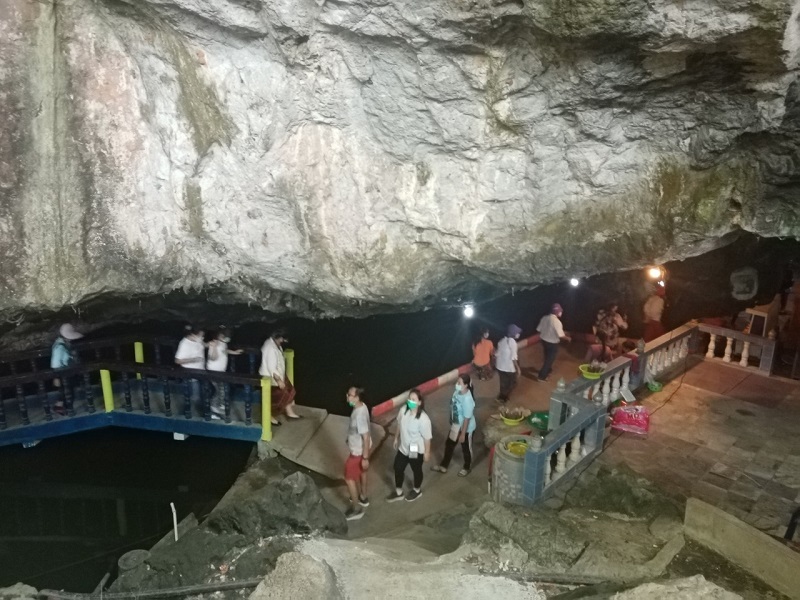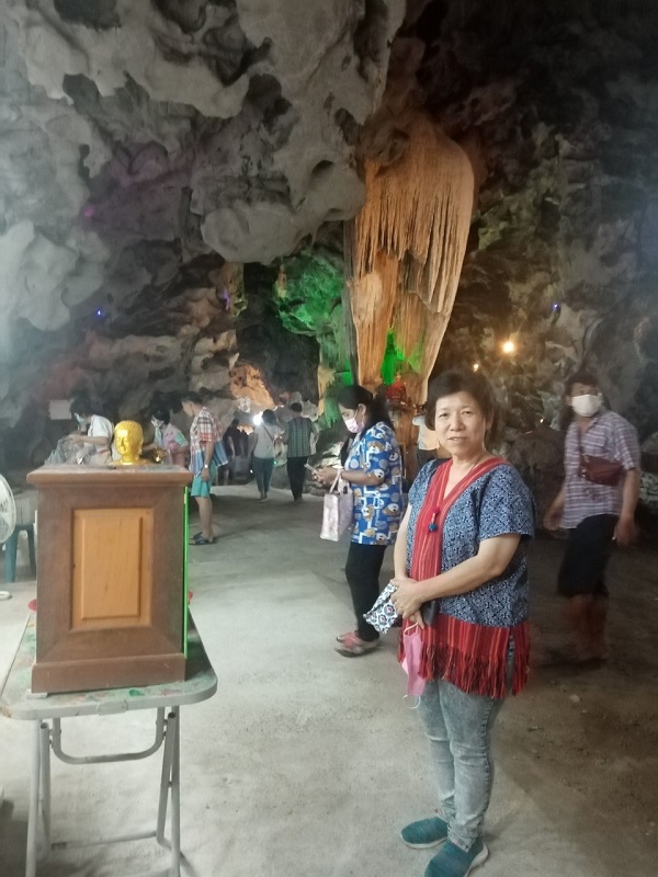 ต่อจากนั้นเราก็นมัสการพระพุทธไสยาสน์ พระราหู และเจ้าแม่กวนอิมปางไสยาสน์ แล้วเดินมาสู่ลานพระพุทธเจ้าโปรดเศรษฐีทั้ง 7 ซึ่งพระพุทธรูปองค์นี้ปางสมาธิรูปแบบการก่อสร้างอินเดีย เมื่อเสร็จภารกิจกราบไหว้แล้ว สมาชิกทั้งหมดออกเดินทางเพื่อจะไปกราบไหว้หลวงพ่อเงินที่นอนอยู่ในโลงแก้ว หลังจากท่านมรณภาพแล้วร่างกายกลับไม่เน่าเปื่อย อยู่ในศาลามณฑป ในวัดถ้ำน้ำ แห่งเดียวในราชบุรีที่ทางวัดจัดรูปแบบทางเดินมีทั้งสะพานเดินไปดูความสวยงามของหินย้อยหินงอก ภายในถ้ำน้ำถ้ำนาคา มีน้ำขังเป็นบึงกว้างพอประมาณ ทางคุณอ้วน ปาณิษา นำสมาชิกนั่งสวดมนต์บูชาพระยานาคราชที่อยู่ในถ้ำนาคา เสร็จแล้วยังมีทางเดินขึ้นไปกราบไหว้บูชาพระพุทธรูปอยู่ข้างบน แต่สมาชิกสูงวัยเลยเดินไปส่วนหนึ่งแล้วก็กลับออกมากราบไหว้สรีระหลวงพ่อเงินภายในห้องมณฑป ก่อนที่จะออกเดินทางไปทางอาหารกลางวันที่ร้านเพลินดี ซึ่งทาง ททท.สำนักงานราชบุรีเชิญชวนให้มาทานอาหารที่ร้านแห่งนี้ โดนมีรองเล็ก รองผอ.ททท.สำนักงานราชบุรี เป็นผู้ต้อนรับ พวกเราทานอาหารกันอย่างอร่อยในมื้อกลางวัน สมราคาที่พูดเอาไว้ว่าอร่อยดี