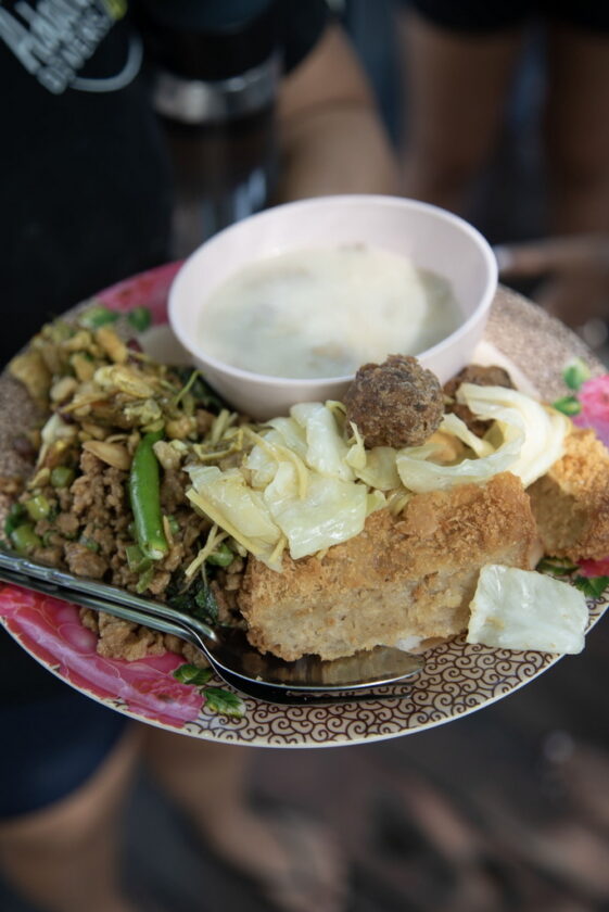 หลังจากทำกิจกรรมปลูกป่ากันเรียบร้อยแล้ว มีการเลี้ยงอาหารกลางวันเป็นอาหาร Vegan (วีแกน) และ Plant-based Food (แพลนท์ เหบส ฟู้ด) อาหารที่ดีต่อสุขภาพและไม่เบียดเบียนสัตว์ทั้งหลาย