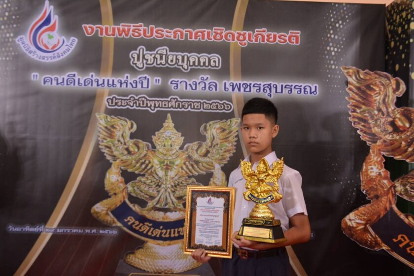 เด็กชายปกรณ์เกียรติ สุขสุคนธ์ ได้รับรางวัล “เพชรสุบรรณ” เชิดชูเกียรติคุณต้นแบบสังคม สาขาบุคคลผู้เป็นแบบอย่างเยาวชนดีเด่น