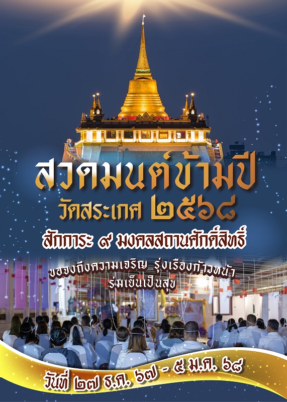Read Moreพิธีเจริญพระพุทธมนต์เพื่อความเป็นสิริมงคลในวาระส่งท้ายปีเก่าต้อนรับปีใหม่ส่งท้ายปีเก่าวิถีไทย ๒๕๖๗ ต้อนรับปีใหม่วิถีพุทธ ๒๕๖๘ “สวดมนต์ข้ามปี วัดสระเกศ ๒๕๖๘” ตั้งแต่วันนี้ จนถึงวันที่ ๕ มกราคม ๒๕๖๘
