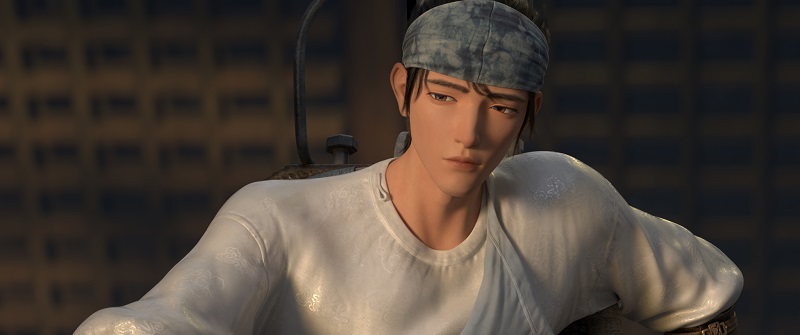 ในตอนแรก หยางเจียน ถูกแนะนำให้คนดูรู้จักในสภาพขุนนางผู้ยากจน เสื้อคลุมสีขาวของเขาควรชวนให้นึกถึงผ้าไหมเนื้อดีราคาแพง และเราผสานลวดลายเมฆที่สลับซับซ้อนลงไป ในเรื่องนี้ หยางเจียนไม่ใช่เทพเจ้าแห่งสงครามอีกต่อไป