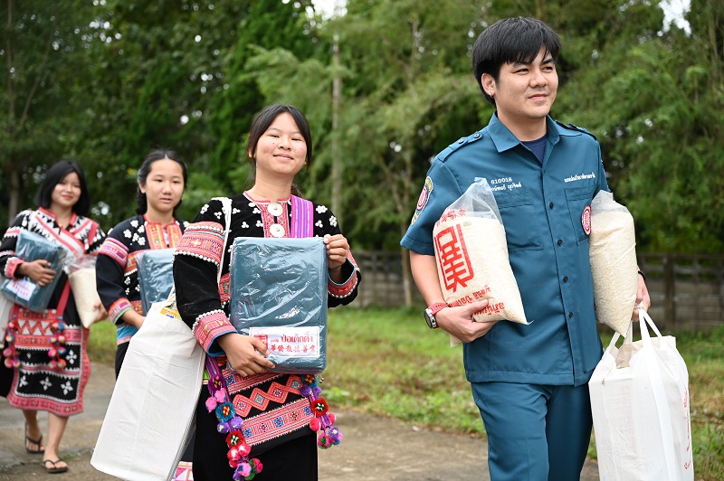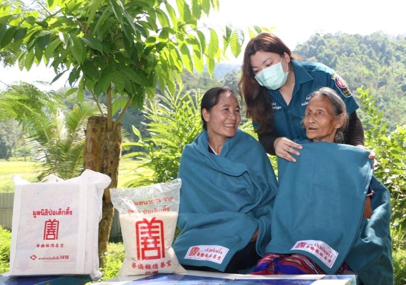 . โดยวานนี้ (วันที่ 17 พฤศจิกายน 2566) นางศิริกุล โอภาสวงศ์ กรรมการและเลขาธิการ พร้อมด้วย นายจารุรัตน์ คุณัตถานนท์ กรรมการและเหรัญญิก นางสาวดวงชุตา ติยะพจนพรกุล ผู้ช่วยผู้จัดการฝ่ายสังคมสงเคราะห์ และนายรัชพร ประสงค์ทรัพย์ หัวหน้าแผนกสาธารณภัย ฝ่ายสังคมสงเคราะห์ นำทีมลงพื้นที่ อ.พาน อ.แม่จัน อ.ดอยหลวง อ.เวียงเชียงรุ้ง จ.เชียงราย มอบผ้าห่มกันหนาว พร้อมเครื่องอุปโภคบริโภค อาทิ ข้าวสาร บะหมี่กึ่งสำเร็จรูป ปลากระป๋อง น้ำมันพืช น้ำปลา ฯลฯ บรรจุลงกระเป๋าผ้า รวม 900 ชุด โดยมี ผู้แทนจากหน่วยงานรัฐ รวมทั้ง อาสาสมัครมูลนิธิป่อเต็กตึ๊ง นำโดย นางศิริวรรณ โอภาสวงศ์ อาสาสมัครกิตติมศักดิ์ และนางศิริพร โอภาสวงศ์ อาสาสมัครกิตติมศักดิ์ ร่วมในพิธี รวมทั้ง หน่วยงาน สมาคม /มูลนิธิประจำจังหวัดแต่ละจังหวัด เป็นผู้ประสานงานและร่วมในพิธี