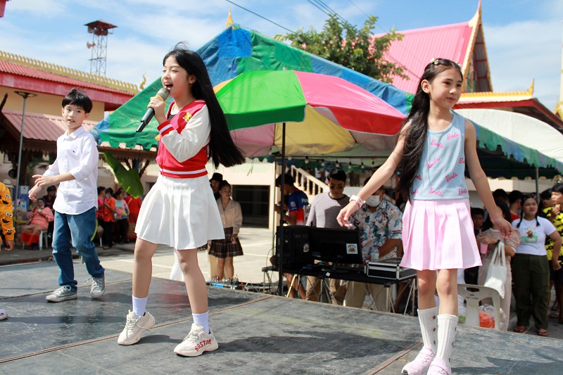 ซึ่งบรรยากาศเป็นไปอย่างอบอุ่นตั้งแต่ช่วงเช้า โดยมีโชว์มินิคอนเสิร์ตสุดพิเศษจากเหล่านักแสดง เปิดเวทีเรียกเสียงกรี๊ดจากพ่อยกแม่ยกกันด้วย 2 นักแสดงหนุ่มรุ่นใหญ่ กระดุม และ อาร์ต ตามมาด้วยน้องๆ นักแสดงนิวเจนจาก สวัสดี วิชชั่น ที่ผลัดกันขึ้นเวทีทั้งร้องและเต้นกันแบบไม่มีพัก สร้างความคึกคักให้กับเหล่าชาวบ้านผู้ใจบุญ ที่มาร่วมทำบุญทอดกฐินสามัคคีกันในครั้งนี้เป็นอย่างมาก ทั้งอิ่มบุญและอิ่มใจกันถ้วนหน้าไปเลยจ้า