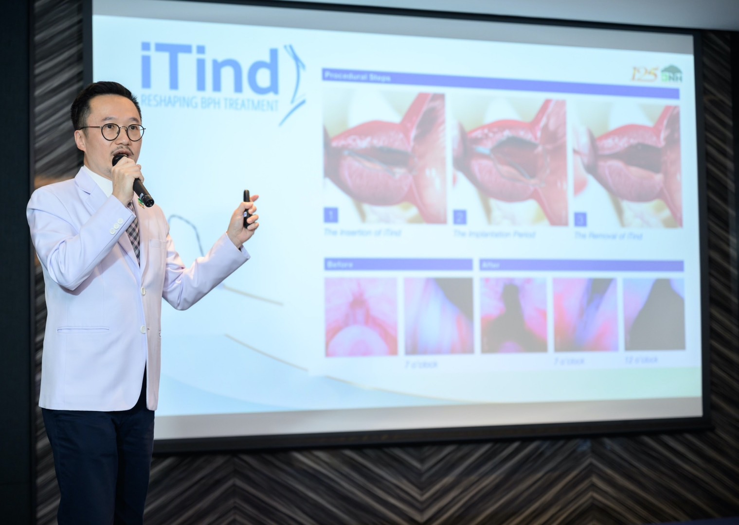 นายแพทย์สรรชัย วิโรจน์แสงทอง แพทย์ผู้ชำนาญการด้านระบบทางเดินปัสสาวะ โรงพยาบาลบีเอ็นเอช และยังเป็นแพทย์คนแรกของประเทศไทยที่สามารถรักษาต่อมลูกหมากโตได้ทั้ง 2 เทคนิค iTind และ Rezum กล่าวถึงวิธีการรักษาโรคต่อมลูกหมากโตนี้ว่า “คือโรคที่ต่อมลูกหมากโตขึ้น แล้วมีการบีบรัดทางเดินปัสสาวะทำให้ผู้ป่วยมีอาการ ปัสสาวะไม่พุ่ง ปัสสาวะไม่สุด ปวดปัสสาวะบ่อย คุณภาพการนอนหลับไม่ดี เพราะต้องลุกขึ้นมาปัสสาวะกลางดึกบ่อย อาการเหล่านี้ล้วนเป็นสัญญาณบ่งชี้ว่าคุณมีแนวโน้มที่จะเป็นโรคต่อมลูกหมากโตได้ คนที่เป็นโรคนี้ส่วนใหญ่จะเกิดขึ้นกับผู้ชายวัย 50 ปีขึ้นไป และจะพบมากถึง 90% ที่มีอายุ 60 – 90 ปี ในสมัยก่อนจะใช้การรักษา 2 วิธี คือ แบบทานยา ที่ผู้ป่วยต้องทานยาตลอดเพื่อใช้รักษาตามอาการที่เป็นอยู่ และ แบบผ่าตัด คือการส่องกล้องเข้าไปคว้านต่อมลูกหมาก ซึ่งทั้งสองแบบนี้จะมีผลข้างเคียงตามมาที่แตกต่างกัน อย่างการผ่าตัดอาจจะมีผลต่อการหลั่งน้ำอสุจิของคุณผู้ชายและทำให้สูญเสียสมรรถภาพทางเพศ จึงทำให้หลายคนไม่กล้าที่จะเข้ามารับการรักษา แต่ในปัจจุบันทางโรงพยาบาลได้นำนวัตกรรมที่ทันสมัยเข้ามาใช้รักษาเพื่อเป็นทางเลือกให้กับผู้ป่วยด้วย 2 เทคนิค ได้แก่