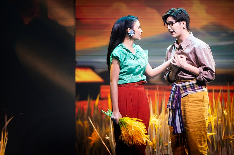 จริง ๆ เปิดฉากมาด้วยความอลังการของแสงสีเสียงตระการตา พร้อมเหล่านักแสดงมาครบทีม ตั้งแต่ “เปา – เปาวลี พรพิมล” กับผลงานละครเวทีเรื่องแรก แต่ก็ทำได้ดีเยี่ยม ทั้งร้องทั้งเต้นและเสียงในแบบฉบับที่ยากที่ใครจะเลียนแบบ ด้าน “พี่คล้าว” รับบทโดย “ธัช กิตติธัช แก้วอุทัย” ผลงานการันตีจากแชมป์รายการเพลงเอกซีซั่น 1 กับความสามารถอีกด้านหันมาร้องเพลงลูกทุ่งแทนเพลงลูกกรุงที่ตัวเองถนัดได้เป็นอย่างดี แต่ที่สร้างสีสัน เรียกเสียงหัวเราะและรอยยิ้มให้กับผู้ชมได้ดีคงหนีไม่พ้นศิลปินเสียงดีจากเวทีเพลงเอก และศิลปินจากค่ายยุ้งข้าวเรคคอร์ด อาทิ “ซัน วงศธร” กับการสวมบทบาท “แว่น” นับเป็นอีกหนึ่งตัวละครที่มีการเติมความพิเศษเข้าไปพร้อมโชว์ร้องลิเกที่ได้เรียบเรียงใหม่ให้เข้ากับยุคสมัย ร่วมด้วย “ฟอร์ม ชลพิพรรธน์” กับบทของ “หมู่น้อย” แก๊งเพื่อนคล้าว ที่ออกมาทีไรก็เรียกเสียงกรี๊ดจากเหล่าแม่ยกได้ทั้งโรงละคร ถือว่าแปลกแหวกแนวในแบบมนต์รักครั้งใหม่ที่แตกต่างจากเดิม ส่วนเพื่อนนางเอกอย่าง “บุปผา” รับบทโดย “หมิว เขมจิรา” ออกมาแต่ละซีนสามารถสร้างรอยยิ้มให้กับผู้ชมได้ไม่แพ้กัน พร้อมกับโชว์พลังเสียงร้องที่การันตีจากรองแชมป์ไมค์ทองคำ 8 ไม่แปลกที่ใครหลายคนบอกว่า นี่เป็นจุดแจ้งเกิดของศิลปินจากค่ายยุ้งข้าวเรคคอร์ดได้ไม่ยาก…