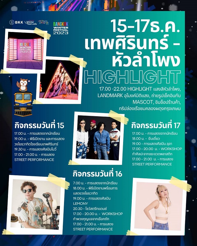 กรุงเทพมหานคร ขอเชิญเที่ยวงาน Bangkok Winter Festival งานฤดูหนาวส่งท้ายปี 2023 ณ แนวคลองผดุงกรุงเกษม