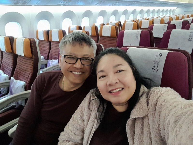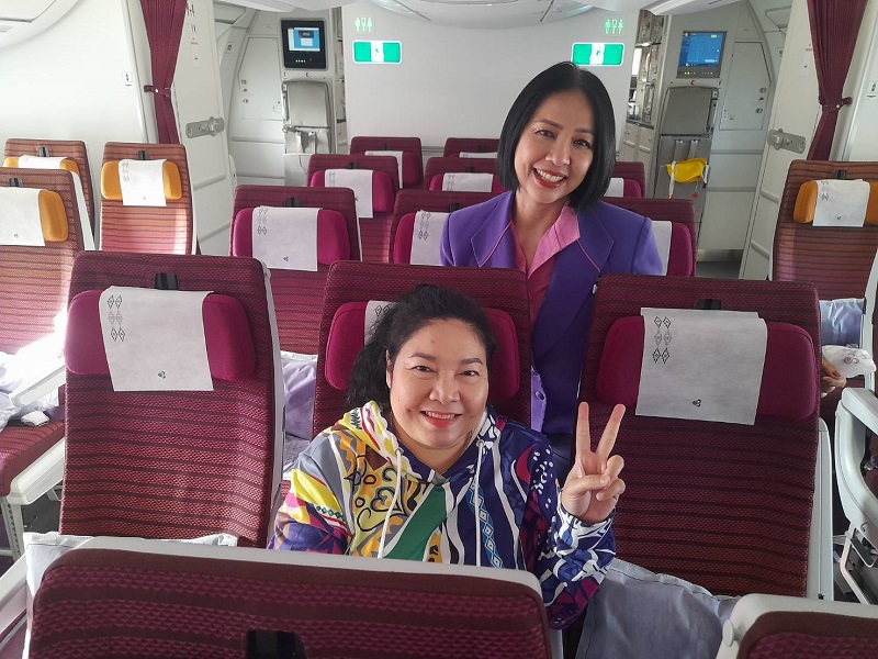 หลังจากเครื่องขึ้นแล้วแอร์น้องหนูก็ประคองเราพาไปนั่งที่นั่งที่เตรียมไว้คู่กับคุณสามีอย่างที่บอก เมื่อเรานั่งเรียบร้อยก็เลยเผยอาชีพ พร้อมขอสัมภาษณ์แอร์โฮสเตส “น้องหนู – สุนทรี มีอุดม zone superv” ถึงการทำงานในอาชีพนี้ พร้อมผลกระทบจากโควิดระบาดว่า