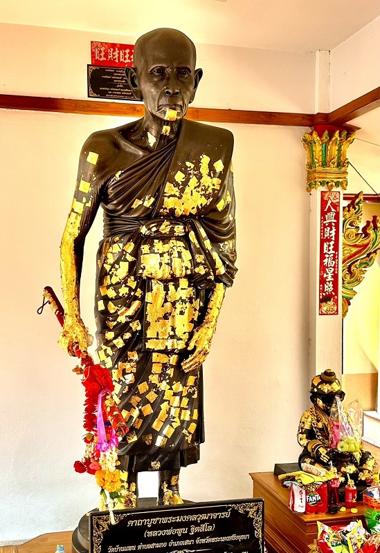 จุดที่ 1 รูปหล่อหลวงปู่ได้ เช่น เรื่องเมตตามหานิยม โชคลากหรือความปลอดภัยในชีวิตและทรัพย์สินเสร็จแล้วปิดทององค์หลวงปู่พูนได้จ้า