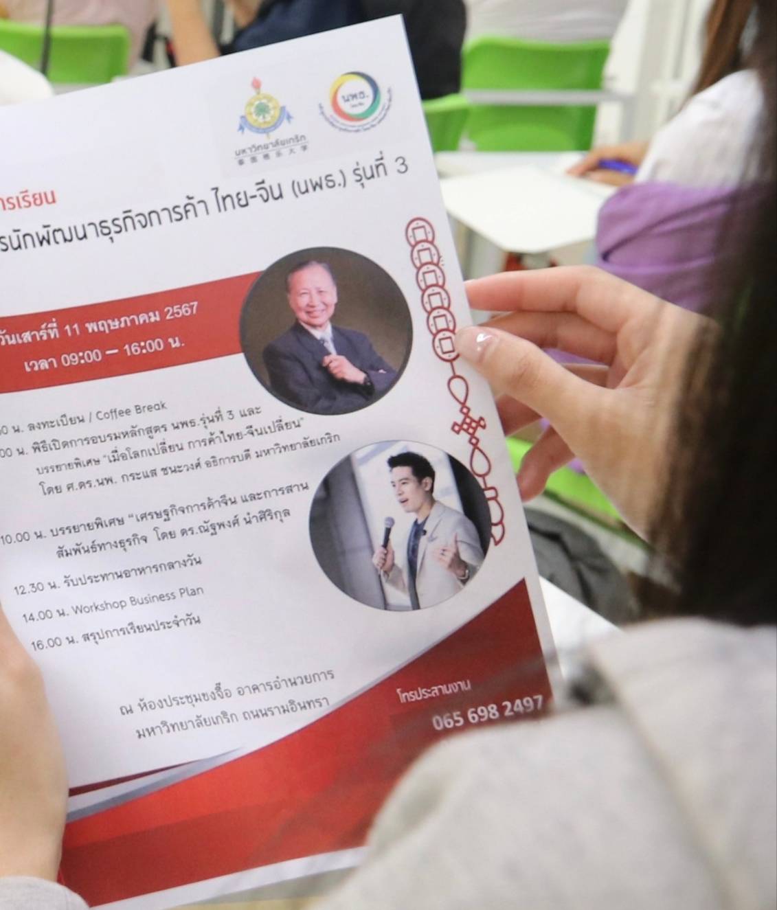 ภายในงานได้รับเกียรติจาก ศ.ดร.นพ. กระแส ชนะวงศ์ อธิการบดีมหาวิทยาลัยเกริก เป็นประธานนการเปิดการอบรมหลักสูตร นพธ.รุ่นที 3 ได้กล่าวต้อนรับผู้เข้าร่วมงานและสื่อมวลชน กล่าวเปิดงาน รวมถึงบรรยายพิเศษ ในหัวข้อ “เมื่อโลกเปลี่ยน การค้าไทย-จีนเปลี่ยน” พร้อมด้วย ดร.ณัฐพงศ์ นำศิริกุล หรือ ครูป๊อป ที่จะนำเรื่องราวและประสบการณ์ตรงจากการทำงานร่วมกับหน่วยงานทั้งภาค รัฐบาลและเอกชนไนประเทศจีน มาบรรยายพิเศษ ไนหัวข้อ “เศรษฐกิจการค้าจีนและการสานสัมพันธ์ทางธุรกิจ”