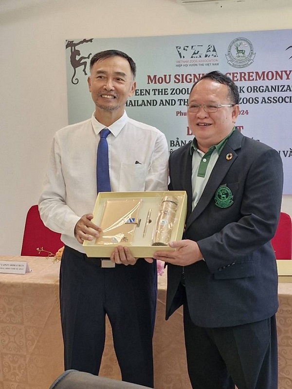 11 มิถุนายน 2567 องค์การสวนสัตว์แห่งประเทศไทยฯ ได้มีการลงนามบันทึกความเข้าใจว่าด้วยความร่วมมือในการอนุรักษ์สัตว์ป่าและการจัดการสวนสัตว์ร่วมกับสมาคมสวนสัตว์เวียดนามณ วินเพิร์ล ซาฟารี ฟูก๊วก สาธารณรัฐเวียดนาม โดยผู้แทน องค์การสวนสัตว์แห่งประเทศไทยฯ ประกอบด้วย รองศาสตราจารย์กำลัง ชุมพลบัญชร กรรมการองค์การสวนสัตว์แห่งประเทศไทย นายอรรถพร ศรีเหรัญ ผู้อำนวยการองค์การสวนสัตว์แห่งประเทศไทย นายวันชัย ตันวัฒนะ รองผู้อำนวยการองค์การสวนสัตว์แห่งประเทศไทย และ สมาคมสวนสัตว์เวียดนาม Dr. Pham Vete Lame ประธานสมาคมสวนสัตว์เวียดนาม และ Mr. Luu Chi Hieu ผู้อำนวยการ Vinpearl Safari ให้การต้อนรับ ณ วินเพิร์ล ซาฟารี ฟูก๊วก สาธารณรัฐเวียดนาม