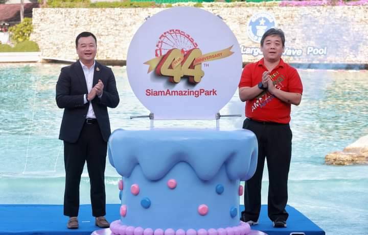 วันเสาร์ที่ 23 พฤศจิกายน 2567 เวลา 15.00 น. นายสรวงศ์ เทียนทอง รัฐมนตรีว่าการกระทรวงการท่องเที่ยวและกีฬา ได้ให้เกียรติเป็นประธานในพิธีเปิดงาน 44 ปี สยามอะเมซิ่งพาร์ค โดยมี ดร.ไชยวัฒน์ เหลืองอมรเลิศ ประธานที่ปรึกษากลุ่มบริษัทสยามพาร์คซิตี้ นายสิทธิศักดิ์ เหลืองอมรเลิศ กรรมการผู้จัดการใหญ่ บริษัท สยามพาร์ค บางกอก จำกัด พร้อมผู้บริหารและแขกผู้มีเกียรติ ให้การต้อนรับ ณ ชายหาด ทะเล -กรุงเทพฯ