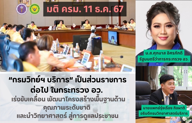 นพ.รุ่งเรือง อธิบดีกรมวิทย์ฯ บริการ กล่าวเพิ่มเติมว่า เช้าวันนี้ คณะรัฐมนตรีได้มีมติเห็นชอบ ร่างพระราชบัญญัติระเบียบบริหารราชการกระทรวงการอุดมศึกษา วิทยาศาสตร์ วิจัยและนวัตกรรม (ฉบับที่ ..) พ.ศ. …. เพื่อยกเลิก มาตรา 38 ที่กำหนดให้เปลี่ยนสถานภาพกรมวิทย์ฯ บริการ จากส่วนราชการไปเป็นองค์การมหาชน ซึ่งการยกเลิกมาตราดังกล่าว จะทำให้กรมวิทย์ฯ บริการ ยังคงสภาพความเป็นส่วนราชการในกระทรวง อว. ต่อไป เนื่องจากประเทศยังจำเป็นต้องมีส่วนราชการที่ทำหน้าที่กำกับดูแล และให้ข้อเสนอแนะเชิงนโยบาย เป็นห้องปฏิบัติการอ้างอิงแห่งชาติ เป็นหน่วยให้การรับรองกำกับติดตามห้องปฏิบัติการทั่วประเทศ และทำหน้าที่วิจัยพัฒนาด้านวิทยาศาสตร์สู่การดูแลประชาชน กรมวิทย์ฯ บริการมุ่งมั่นปฏิบัติภารกิจตามนโยบายรัฐบาลและท่านรัฐมนตรีศุภมาส ในการทำงานเน้นตอบโจทย์ ตรงความต้องการประเทศชาติและประชาชน เพื่อความมั่นคงของชีวิต เศรษฐกิจ และการพัฒนารูปแบบการบริหารจัดการที่มีอยู่แล้วให้มีประสิทธิภาพมากขึ้นและไม่เป็นภาระด้านงบประมาณของประเทศ