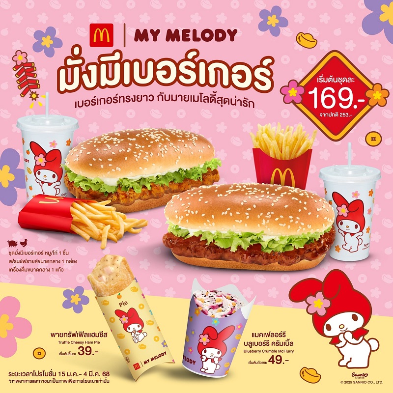 กรุงเทพฯ (15 มกราคม 2568) – แมคโดนัลด์’ เปิดปีด้วยความปัง ให้ทุกคนได้สุขสันต์ มั่งมีรับปีใหม่ กับแคมเปญ ‘มั่งมีเบอร์เกอร์ x MY MELODY’ ยกความน่ารักของ MY MELODY มามากมาย ทั้งเมนูใหม่, แพ็กเกจจิงและของพรีเมี่ยมสุดเอ็กซ์คลูซีฟ