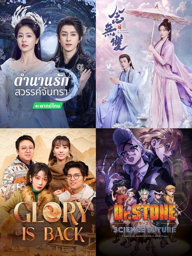 เปิดศักราชใหม่ปี 2025 ด้วยคอนเทนต์สุดพรีเมียมกว่า 30 เรื่อง ครบทั้งซีรีส์ วาไรตี้ และอะนิเมชัน ตอกย้ำความเป็นบ้านแห่งความบันเทิงที่ตอบโจทย์ทุกไลฟ์สไตล์ผู้ชมซีรีส์ไฮไลต์: นำทีมโดย ตำนานรักสวรรค์จันทรา (Moonlight Mystique) ซีรีส์จีนแนวพีเรียด-แฟนตาซีที่กวาดยอดจองชมกว่า 4 ล้านครั้งทั่วโลก พร้อมกระแสแรงติดเทรนด์ #ตำนานรักสวรรค์จันทรา ตั้งแต่วันแรกที่ออกอากาศ ยังมีซีรีส์จีนฟอร์มยักษ์อีกหลายเรื่องที่เตรียมลงจอ เช่น Unbreakable II, ขณะหนึ่งชั่วนิจนิรันดร์ (A Moment But Forever) และ Love of the Divine Tree ที่จะพาผู้ชมดำดิ่งสู่โลกแฟนตาซีสุดตระการตา