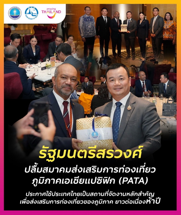 เย็นวานนี้ ท่านรัฐมนตรีสรวงศ์ เทียนทอง รัฐมนตรีว่าการกระทรวงการท่องเที่ยวและกีฬาได้หารือและประชุมกับประธานเจ้าหน้าที่บริหาร สมาคมส่งเสริมการท่องเที่ยวภูมิภาคเอเชียแปซิฟิก (PATA) Mr. Noor Ahmad Hamid ร่วมด้วย ผู้ช่วยรัฐมนตรีว่าการกระทรวงการท่องเที่ยวฯ ผู้ว่าการการ ททท. รองผู้อำนวยการ สสปน. โดยทางสมาคมส่งเสริมการท่องเที่ยวภูมิภาคเอเชียแปซิฟิก (PATA) ได้ขอบคุณในการสนับสนุนและความร่วมมืออย่างดีระหว่าง PATA กระทรวงการท่องเที่ยวและกีฬา การท่องเที่ยวแห่งประเทศไทย สำนักงานส่งเสริมการจัดประชุมและนิทรรศการมาอย่างต่อเนื่อง ทำให้ ทุกกิจกรรมประสบความสำเร็จอย่างดีและพร้อมยืนยัน ด้วยศักยภาพของประเทศไทยและกรุงเทพมหานคร
