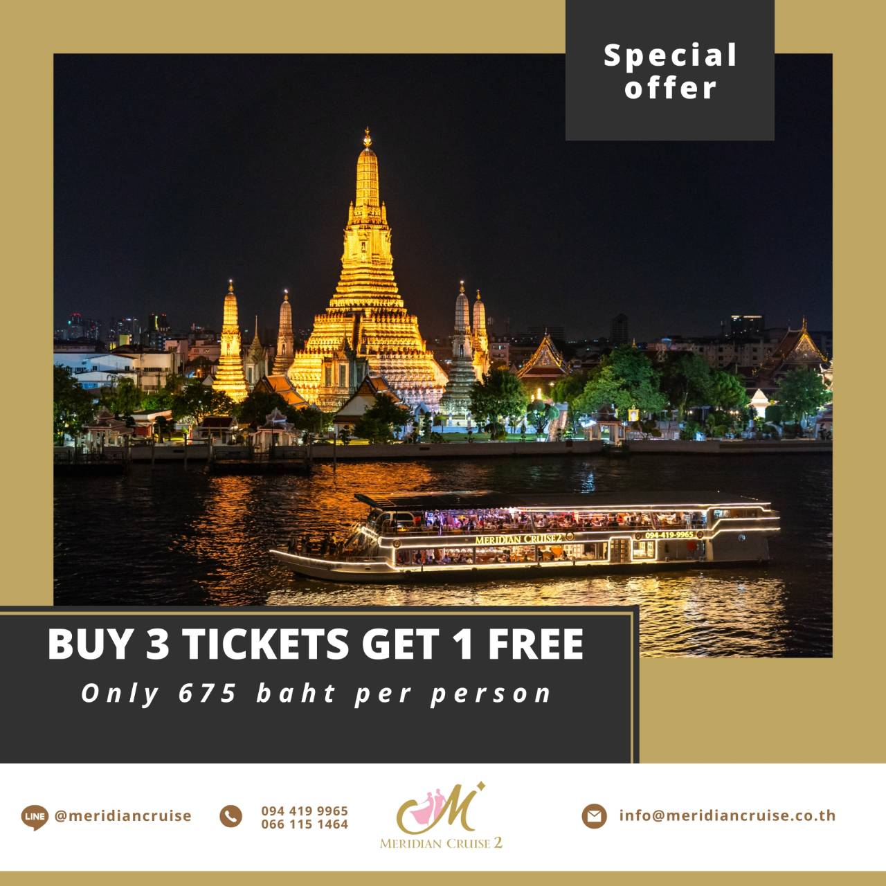 เมอริเดียน ครูซ 2 ขอเชิญชวนทุกคู่รัก มอบช่วงเวลาดีๆให้กับคนพิเศษของคุณในเดือนแห่งความรัก พร้อมดื่มด่าบรรยากาศสุดโรแมนติกยามค่าคืนอันสวยงามของวิวสองฝั่งแม่น้าเจ้าพระยา แบบไม่เหมือนใคร พร้อมอิ่มอร่อยกับบุฟเฟ่ต์นานาชาติ ณ เรือเมอริเดียน ครูซ ไอคอนสยาม
