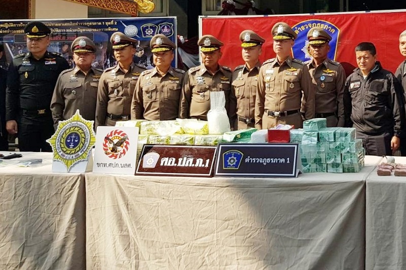 วันที่ 22 ม.ค. 68 เวลา 10.00 น. พล.ต.ท.สุรพล เปรมบุตร ผบช.ภ.1, พล.ต.ต.นราเดช ทิพย์รักษ์ รอง ผบช.ภ.1 พล.ต.ต.ชยานนท์ มีสติ รอง ผบช.ภ.1, พล.ต.ต.วิชิต บุญชินวุฒิกุล ผบก.ภ.จว.สมุทรปราการ, พล.ต.ต.วรชาติ แสนคำ ผบก.สส.ภ.1, พล.ต.ต.ธรรมนูญ เชาวะวนิชย์ ผบก.ภ.จว.สระบุรี, พ.ต.อ.ไกรสร ศรีอำพร ผกก.สส.ภ.จว.สระบุรี/หัวหน้า ชปส.ศอ.ปส.ภ.1 ชุดที่ 2, พ.อ.สุพจน์ สวาคฆพรรณ ผบ.ขกท.ศปก.นสศ. ผู้แทนสำนักงาน ป.ป.ส. ภาค 1 และส่วนราชการที่เกี่ยวข้องร่วมกันแถลงผลการจับกุมคดียาเสพติดรายใหญ่ และคดีสำคัญ รวม 4 คดี ดังนี้