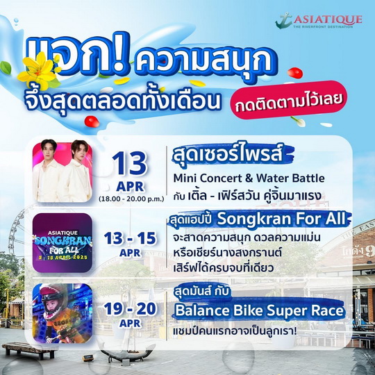 สงกรานต์วันไหลพัทยาปีนี้เตรียมพบกับปาร์ตี้สุดยิ่งใหญ่ตลอด 24 ชั่วโมง ในวันที่ 18-19 เมษายน ณ ลานพัทยาซีฟู้ดสาย 3 ขนความสนุกแบบจัดเต็ม ทั้งดีเจชื่อดัง แสง สี เสียงสุดอลังการ ปาร์ตี้โฟมสุดชุ่มฉ่ำ และแดนเซอร์สุดแซ่บ