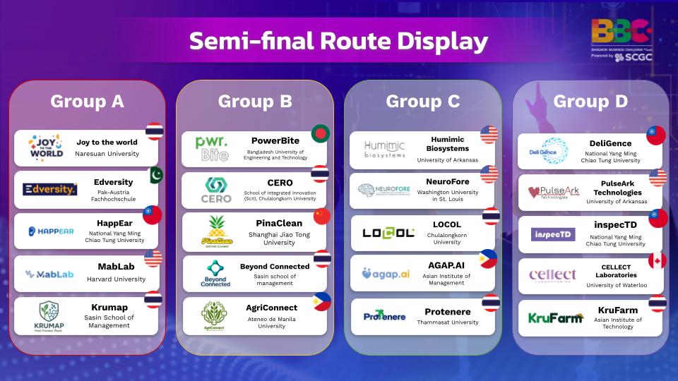 การแข่งขัน Bangkok Business Challenge 2025 powered by SCGC มีทีมจากทั่วโลกสมัครเข้าร่วมแข่งขันทั้งสิ้น 308 ทีม เพิ่มขึ้นจากปีก่อนกว่า 11% ผู้เข้าร่วมแข่งขันทั้งหมดมาจาก 82 สถาบันอุดมศึกษา โดยเป็นสถาบันที่เข้าร่วมครั้งแรกถึง 32 สถาบัน โดยการแข่งขันในปีนี้ ได้รับเกียรติจากเหล่าผู้ทรงคุณวุฒิมากประสบการณ์ มาร่วมเป็นกรรมการตัดสิน เพื่อเฟ้นหาสุดยอดทีมที่มีแนวคิดในการทำธุรกิจที่ดีที่สุดและคู่ควรกับรางวัลเกียรติคุณพระราชทาน H.M. The King’s Award จากพระบาทสมเด็จพระเจ้าอยู่หัวฯ และรางวัลเกียรติคุณพระราชทาน HRH Princess Maha Chakri Sirindhorn’s Sustainability Award จากสมเด็จพระกนิษฐาธิราชเจ้า กรมสมเด็จพระเทพรัตนราชสุดา สยามบรมราชกุมารีฯ พร้อมรางวัลเงินสดรวมมูลค่า 42,000 เหรียญสหรัฐ หรือราว 1,500,000 บาท