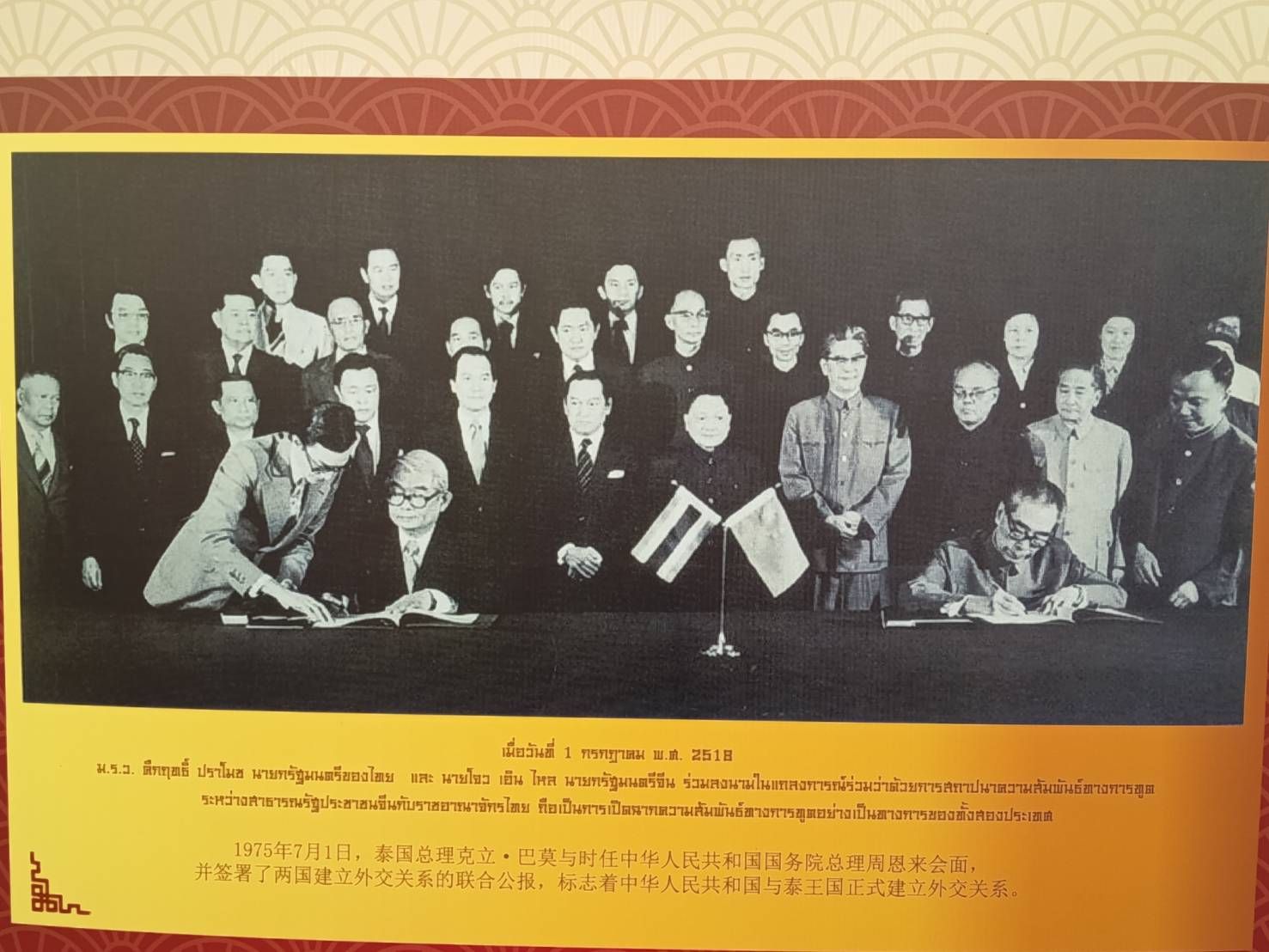 นายกร ทัพพะรังสี นายกสมาคมมิตรภาพไทย-จีน และอดีตเลขานุการ รัฐมนตรีว่าการกระทรวงการต่างประเทศ (พล.อ.ชาติชาย ชุณหะวัณ) ซึ่งร่วมอยู่ในเหตุการณ์วันลงนามในแถลงการณ์ร่วมว่าด้วยการสถาปนาความสัมพันธ์ทางการทูต ระหว่างหม่อมราชวงศ์คึกฤทธิ์ ปราโมช นายกรัฐมนตรี แห่งราชอาณาจักร ไทย กับ นายกรัฐมนตรี โจว เอิน ไหล แห่งสาธารณรัฐประชาชนจีน เมื่อวันที่ 1 กรกฎาคม พุทธศักราช 2518 กล่าวในโอกาสเป็นประธานงานแถลงข่าว “สายใยรักสองแผ่นดิน : 50 ปี สายใยมิตรภาพไทย-จีน” ซึ่ง สมาคมผู้สื่อข่าวไทย-จีน และมูลนิธิปัญญาวุฒิ ร่วมกันจัดขึ้น ณ โรงแรมแม่น้ำรามาดาพลาซา เมื่อวันที่ 24 เมษายน 2568 โดยระบุว่าแถลงการณ์ร่วมว่าด้วยความสัมพันธ์ทางการทูตระหว่างราชอาณาจักรไทย กับ สาธารณรัฐประชาชนจีน ดังกล่าว คือสะพานเชื่อมสายใยมิตรภาพระหว่าง 2 ประเทศ ที่เกิดขึ้นบนการให้ เกียรติและเคารพในอธิปไตยของแต่ละฝ่าย อีกทั้งยังเป็นยันต์เกราะเพชรคุ้มกันประเทศไทย ท้าให้ประเทศไทย รอดพ้นจากภัยคุกคามจากประเทศเพื่อนบ้าน