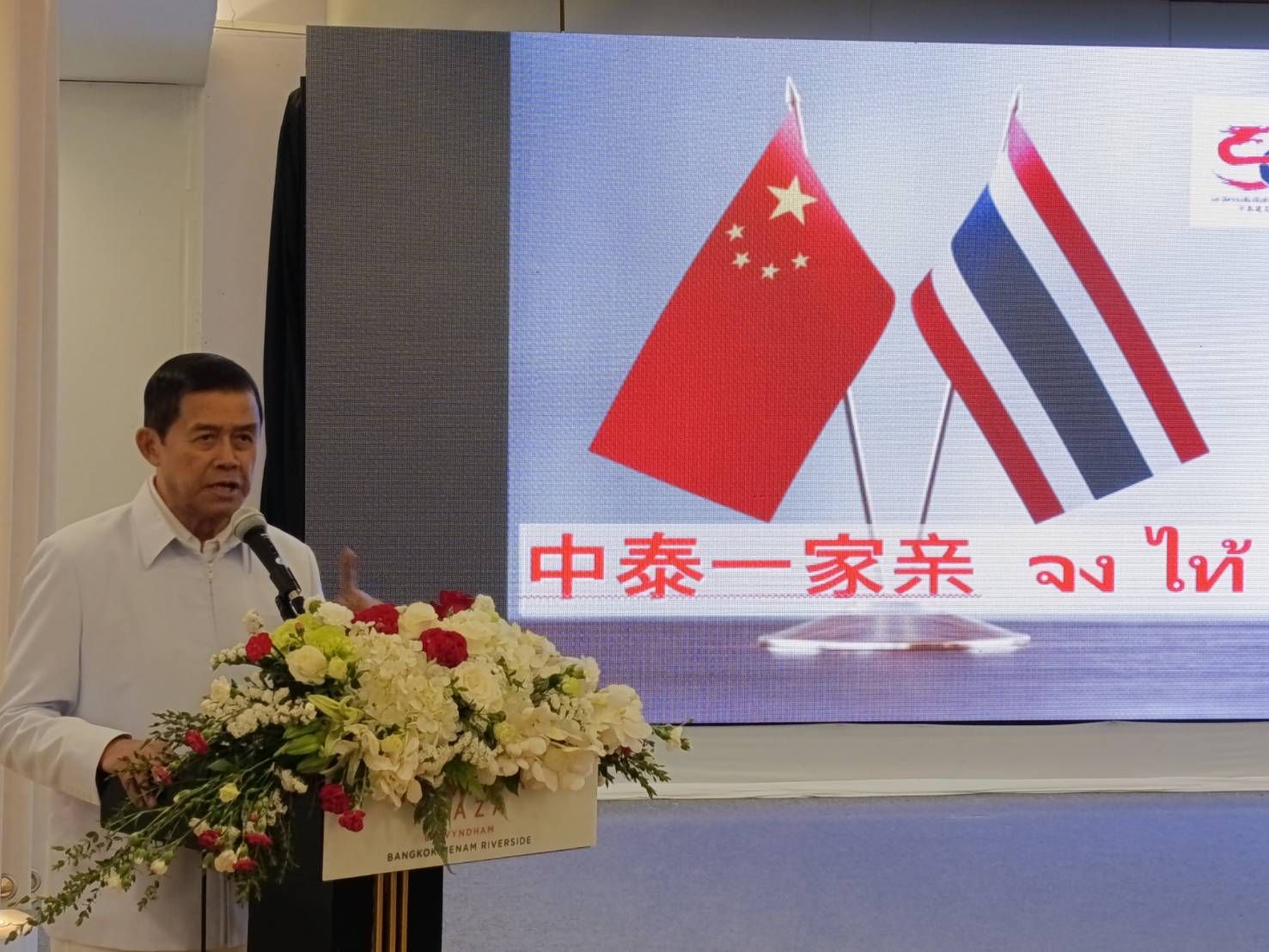 “หลังจากท่านชาติชาย พ้นหน้าที่ไปแล้ว นายกสมาคมมิตรภาพไทย-จีนคนที่ 2 ก็คือผม และผมดำรงตำแหน่งนายกสมาคมมิตรภาพไทย-จีนต่อเนื่องกันมาจนถึงปัจจุบันนี้ โดยตลอดระยะเวลานับตั้งแต่ประเทศไทยกับจีน สถาปนาความสัมพันธ์ทางการทูตระหว่างกัน กระทั่งถึงทุกวันนี้ความสัมพันธ์ของทั้ง 2 ประเทศได้เจริญพัฒนาก้าวหน้าไปมาก ครอบคลุมทุกมิติทั้งระดับราชวงศ์ เรื่อยไปถึงภาคประชาชนทุกสาขาอาชีพ ซึ่ง เป็นสิ่งที่น่ายินดีอย่างยิ่ง และหวังว่าเรื่องราวดีๆ ที่น่าประทับใจจะได้ถูกนำเสนอผ่านภาพยนตร์ดราม่า โรแมนติก เรื่องสายใยรักสองแผ่นดิน ให้คนทั้งโลกได้ซาบซึ้ง”