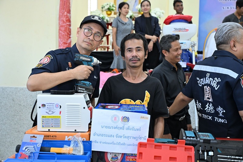 วานนี้ (วันศุกร์ที่ 19 ธันวาคม พ.ศ. 2568) มูลนิธิป่อเต็กตึ๊ง นำโดย นายสุรพงษ์ เตชะหรูวิจิตร กรรมการและรองเลขาธิการ พร้อมด้วย นายสุรพงศ์ เสรฐภักดี กรรมการและรองเหรัญญิก นางสาวศุภรัตน์ สมบัติเจริญไทย หัวหน้าแผนกส่งเสริมการศึกษาและอาชีพ และนางสาวเนาวรัตน์ วรรณศิริ หัวหน้าแผนกหน่วยแพทย์สงเคราะห์ชุมชน นำทีมลงพื้นที่มอบอุปกรณ์ประกอบอาชีพให้แก่ครัวเรือนยากจน ในพื้นที่จังหวัดสุราษฎร์ธานี (จังหวัดที่ 3 ของทางภาคใต้) จำนวน 28 ครัวเรือน มูลค่าทั้งสิ้น 690,450 บาท (หกแสนเก้าหมื่นสี่ร้อยห้าสิบบาทถ้วน) พร้อมจัดหน่วยแพทย์สงเคราะห์ชุมชน นำทีมแพทย์อาสาฯ เจ้าหน้าที่หน่วยแพทย์ ทีมบรรเทาสาธารณภัย (กู้ชีพ) และอาสาสมัครลงพื้นที่ให้บริการประชาชนฟรี ประกอบด้วย บริการตรวจรักษาโรคทั่วไป จ่ายยา ทันตกรรม คัดกรองเบาหวาน ตรวจวัดสายตาพร้อมแจกแว่น บริการตัดผมชาย-หญิง และกิจกรรมนันทนาการ โดยมี นายจุมพฏ วรรณฉัตรสิริ ผู้ว่าราชการจังหวัดสุราษฎร์ธานี และนายสงัด พืชพันธุ์ หัวหน้าผู้ตรวจราชการกรมการพัฒนาชุมชน เป็นประธานร่วมในพิธี คณะมูลนิธิกุศลศรัทธาสุราษฎร์ธานีเป็นผู้ประสานงานและร่วมในพิธี พร้อมด้วย อาสาสมัครศิลปินมูลนิธิป่อเต็กตึ๊ง นำโดย นายนพดล ทรงแสง (จิ้ม ชวนชื่น) นายธวัชชัย คชาอนันต์ (แฮ็ค ชวนชื่น)และ นายเกียรติภูมิ บันลือชัยฤทธิ์ (ภูมิ) ร่วมในพิธี ณ บริเวณหอประชุมที่ว่าการอำเภอท่าฉาง จังหวัดสุราษฎร์ธานี