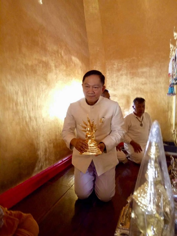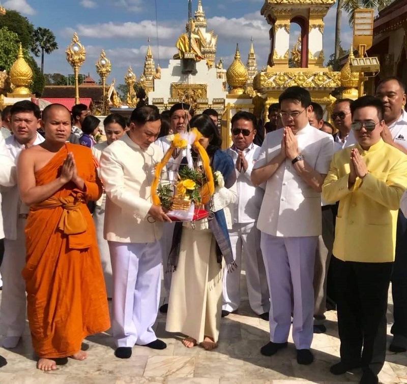 อัญเชิญพระพุทธรูปทองคำขนาดหน้าตัก ๑๐ นิ้ว สร้างด้วยทองคำบริสุทธิ์ ๙๙.๙๙ % น้ำหนัก ๘.๘ กิโลกรัม เข้าประดิษฐาน ภายในองค์พระธาตุพนม จ.นครพนม โดยมีคณะศิษยานุศิษย์ และ พุทธศาสนิกชน ร่วมพิธีโดยพร้อมเพรียงกันครับ