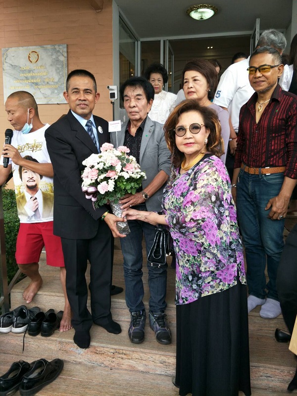 ในการนี้ นายธานินทร์ อินทรเทพ นายกสมาคมนักร้องแห่งประเทศไทยในพระราชูปถัมภ์ สมเด็จพระเทพรัตนราชสุดาฯ พร้อมด้วย ดร.นิตยา อรุณวงศ์ (โฉมฉาย อรุณฉาน) เลขาธิการสมาคมนักร้องฯ, เพ็ญแข อัครบวร เหรัญญิก, วิระ บำรุงศรี ร่วมด้วย นายเฉลียว ปรีกราน  ผู้บริหารตลาดยอดพิมาน ปากคลองตลาด และเหล่าศิลปินดารา เพ็ชรทาย วงศ์คำเหลา (หม่ำ จ๊กม๊ก), ศรสุทธา กลั่นมาลี (ถั่วแระ เชิญยิ้ม) มาร่วมงานเพื่อเป็นการแสดงความยินดี