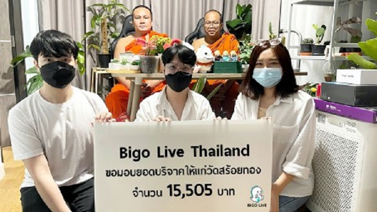 เพื่อเป็นการร่วมบุญกุศลในครั้งนี้ Bigo Live ได้ทำบุญเป็นจำนวน 15,505 บาท ถวายแก่วัดสร้อยทองโดยตัวเลขนี้ได้มาจากช่วงที่มีคนดูการถ่ายทอดสดมากที่สุด
