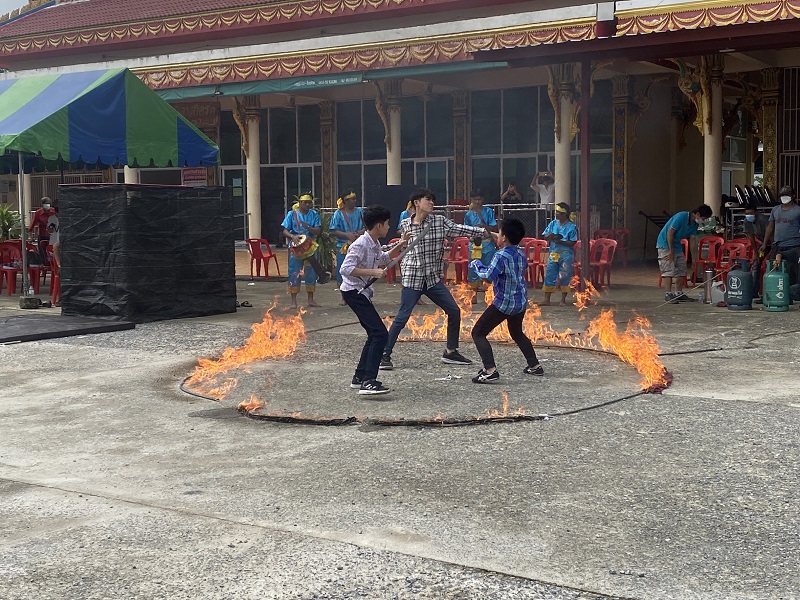 หลังจากที่รัฐบาลเปิดโอกาสให้เปิดกองถ่ายทำภาพยนตร์ได้ “แถวตรง แสบอีหลี” ซึ่งได้ถ่ายทำไปได้หลายสิบเปอร์เซ็นแล้ว วันนี้จึงนัดหมายทีมงานกองถ่ายกันขึ้น ทั้งดารานักแสดง ผู้แสดงสมทบ นับร้อยชีวิต เนรมิตลานวัดบึงทองหลางให้กลายเป็นลานวัฒนธรรมพื้นบ้านของชาวอีสาน สมมุติเป็นลานบุญที่จะมีหนุ่มสาวมาร่วมฟ้อนรำ เซิ้งกระติ๊บ และ มีศิลปะกระบี่กระบอง ดาบ มาแสดงการร่ายรำ ฟาดฟัน ต่อสู้ให้โลกรับรู้ถึงศิลปะการต่อสู้ของชาวชนบท ที่นำมาแสดงต้อนรับแขกบ้านแขกเมือง ให้เห็นถึงความงดงามของศิลปะไทย