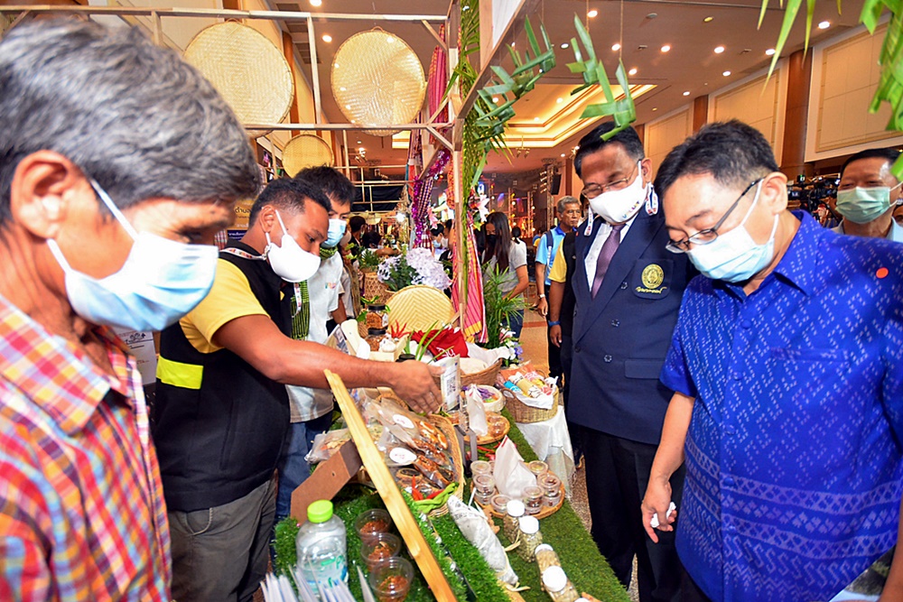 หลังจากนั้นประธานในพิธีและคณะผู้บริหารส่วนราชการเดินเยี่ยมชมผลการดำเนินงาน รายตำบลจังหวัดสระแก้ว จำนวน 19 ตำบล แต่ละจุดการนำเสนอจะมีอาจารย์ซึ่งเป็นหัวหน้าผู้รับผิดชอบ โครงการตำบลนั้น ๆ ร่วมกับผู้ถูกจ้างงานซึ่งอยู่ในโครงการการจ้างงานในช่วงการแพร่ระบาดของโรค COVID19 ของกระทรวงการอุดมศึกษา วิทยาศาสตร์ วิจัย และนวัตกรรม คอยให้ข้อมูล และนำเสนอผลงานที่น่าสนใจ ที่ทางมหาวิทยาลัยได้เข้าไปพัฒนาในตลอด 1 ปีที่ผ่านมา เกิดผลงานเป็นที่ประจักษ์ และชุมชนได้รับการพัฒนา ไปในทางที่ดีขึ้น