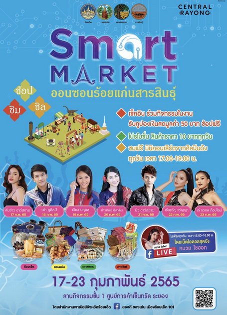 เชิญเที่ยวงาน สมาร์ท มาร์เก็ต ออนซอนร้อยแก่นสารสินธุ์ ที่ศูนย์การค้าเซ็นทรัล ระยอง มีสินค้ามากกว่า 60 คูหามาจำหน่ายในราคาถูก